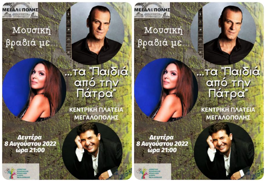 Μουσική Βραδιά με τα Παιδιά από την Πάτρα, σήμερα Δευτέρα 8 Αυγούστου 2022 στην Κεντρική Πλατεία Μεγαλόπολης στις 21:00