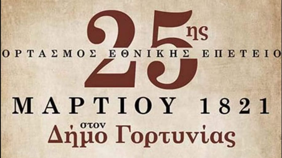 Ο Δήμος Γορτυνίας , η Κοινωφελής Επιχείρηση του Δήμου και οι Τοπικοί Σύλλογοι και Φορείς τιμούν την επέτειο της 25ης Μαρτίου 1821 με επετειακές εκδηλώσεις στις έδρες των Δημοτικών Ενοτήτων και στις Τοπικές Κοινότητες του Δήμου.