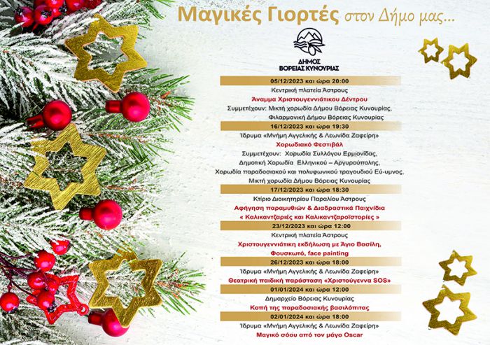 Ο Δήμος Βόρειας Κυνουρίας φοράει τα γιορτινά του και διοργανώνει εορταστικό πρόγραμμα για τους μικρούς και μεγάλους φίλους.