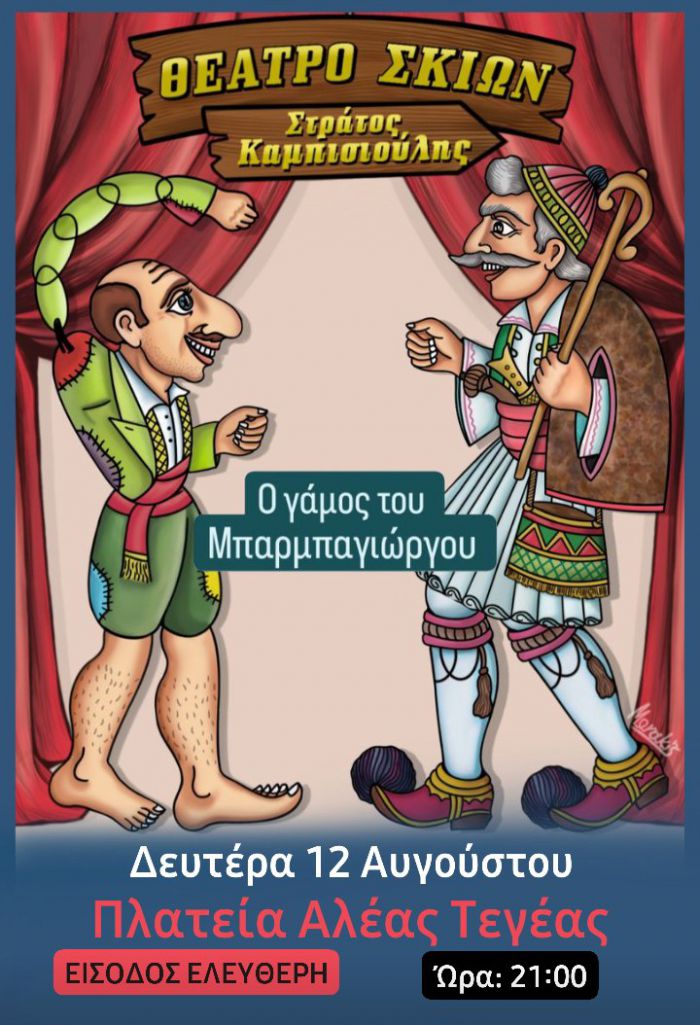 Ο γνωστός καραγκιοζοπαίκτης Στράτος Καμπισιουλης έρχεται στην Αλέα Τεγέας με την υπέροχη παράσταση "Ο γάμος του Μπάρμπαγιώργου".