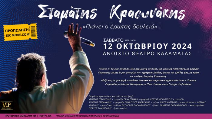 Συναυλία με τον Σταμάτη Κραουνάκη στο Ανοιχτό Θέατρο Καλαμάτας