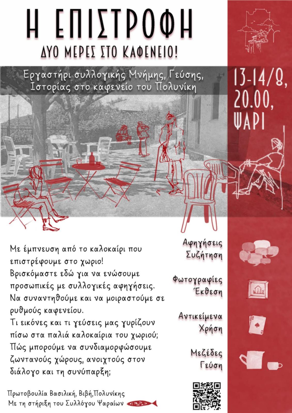 Εργαστήρι συλλογικής Μνήμης, Γεύσης, Ιστορίας στο καφενείο του Πολυνίκη, στο Ψάρι.