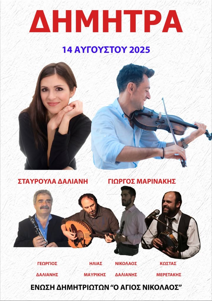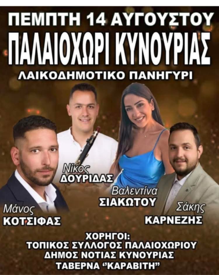 Γλέντια με δημοτική μουσική θα γίνουν την Πέμπτη 14/8/2024 στην Αρκαδία.