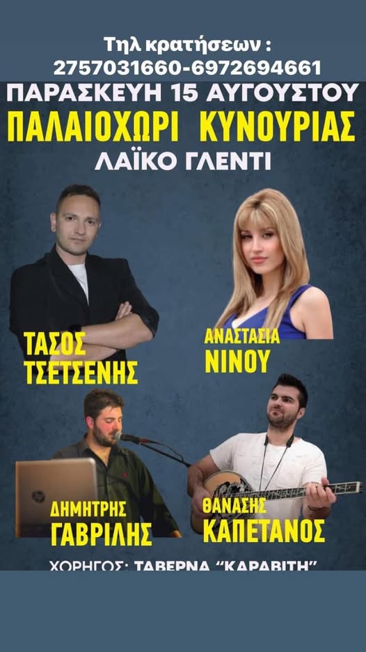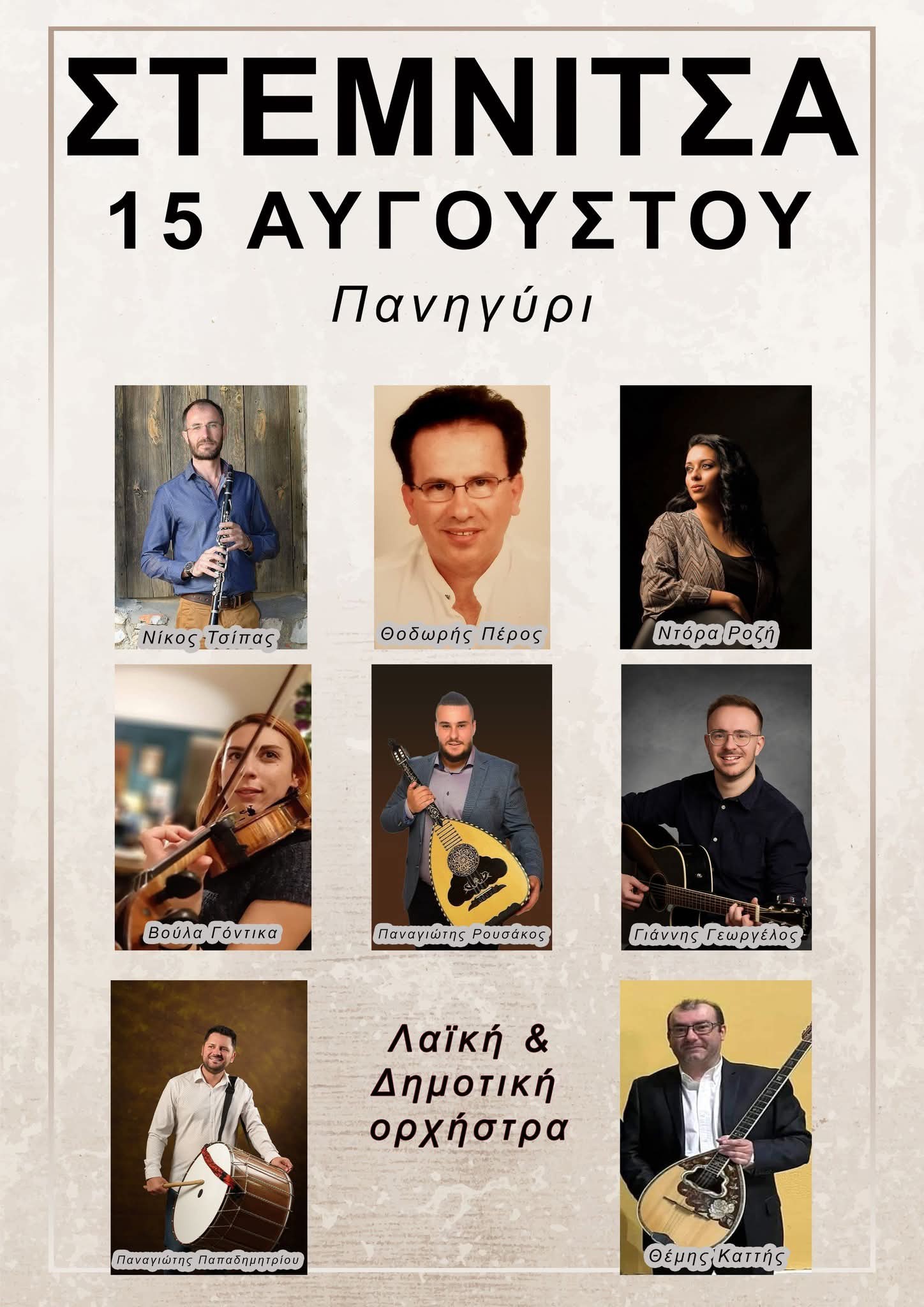 Γλέντια με δημοτική μουσική θα γίνουν την Παρασκευή 15/8/2024 στην Αρκαδία.