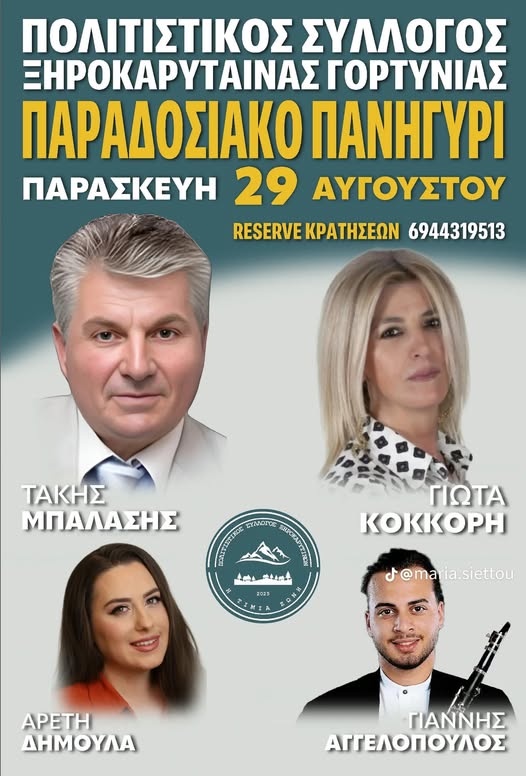 Γλέντια με δημοτική μουσική θα γίνουν την Παρασκευή 29/8/2024 στην Αρκαδία.
