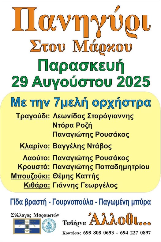 Πανηγύρια 2025 | Τα σημερινά γλέντια στην Αρκαδία (29/8/2025)