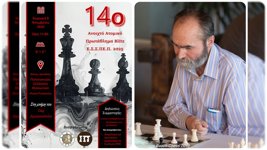 Η διοργάνωση φέτος έχει ιδιαίτερο χαρακτήρα, καθώς θα τιμήσει τη μνήμη του αγαπημένου δασκάλου του σκακιού και φίλου Τάκη Δημητρακόπουλου — ενός ανθρώπου που με το ήθος, τη γνώση και το πάθος του συνέβαλε σημαντικά στην άνθηση του αθλήματος στην Τρίπολη.