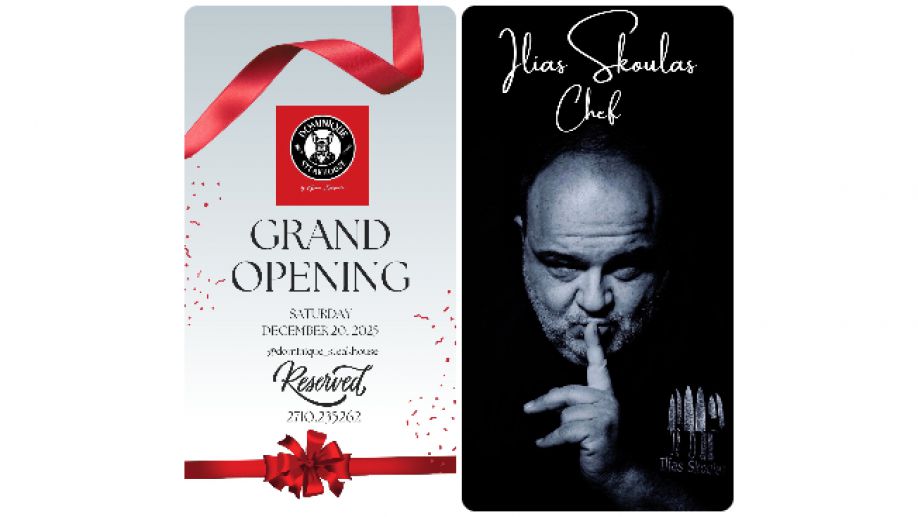 Σημείωση: Λόγω της παρουσίας του Σεφ Ηλία Σκουλά και του μεγάλου ενδιαφέροντος για το Grand Opening, παρακαλούμε για την έγκαιρη κράτησή σας.
