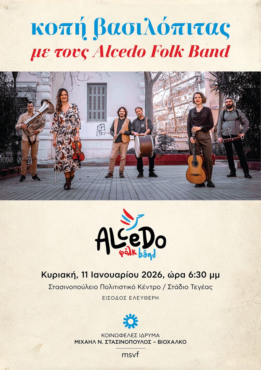 Την Κυριακή 11 Ιανουαρίου 2026, θα γίνει εκδήλωση κοπής βασιλόπιτας με τους Alcedo Folk Band με τη στήριξη του Κοινωφελούς Ιδρύματος Μιχάλη Ν. Στασινόπουλου – Βιοχάλκο.