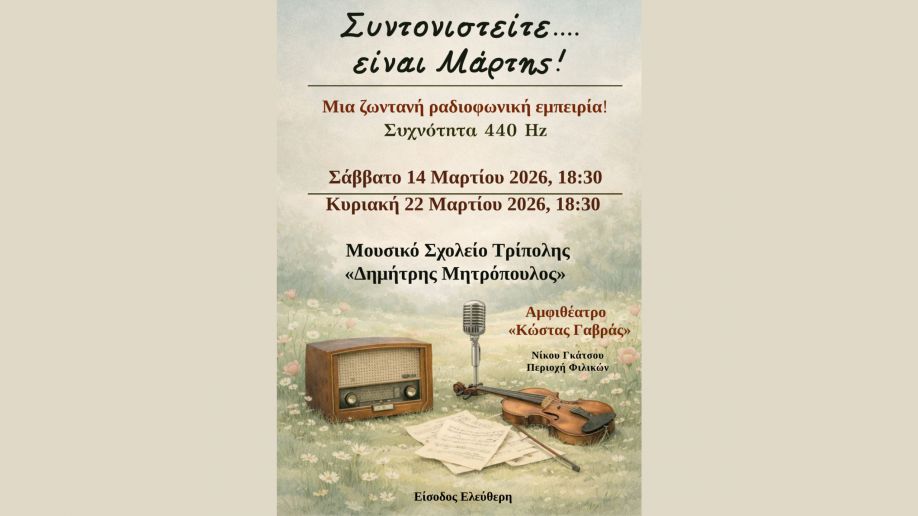 Συναυλία σήμερα στο Μουσικό Σχολείο Τρίπολης