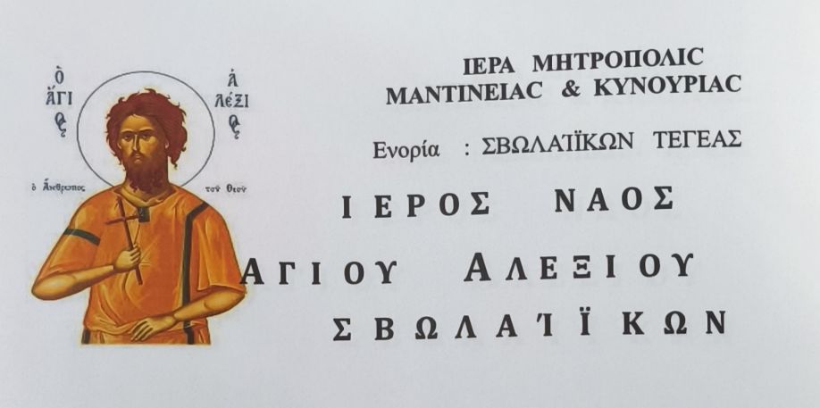 Με κάθε λαμπρότητα Εορτάζει το Εξωκκλησιον Ιερός Ναός Αγίου Αλεξίου της ενορίας Σβωλαίϊκων Τεγέας.