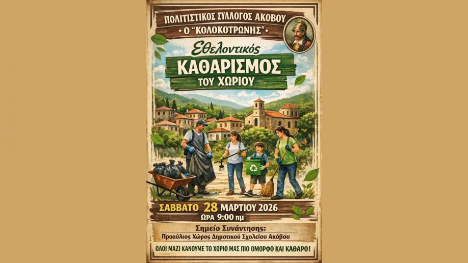 Σάββατο 28/03/2026 και ώρα 9:00πμ στον προαύλιο χώρο του Δημοτικού Σχολείου Ακοβου