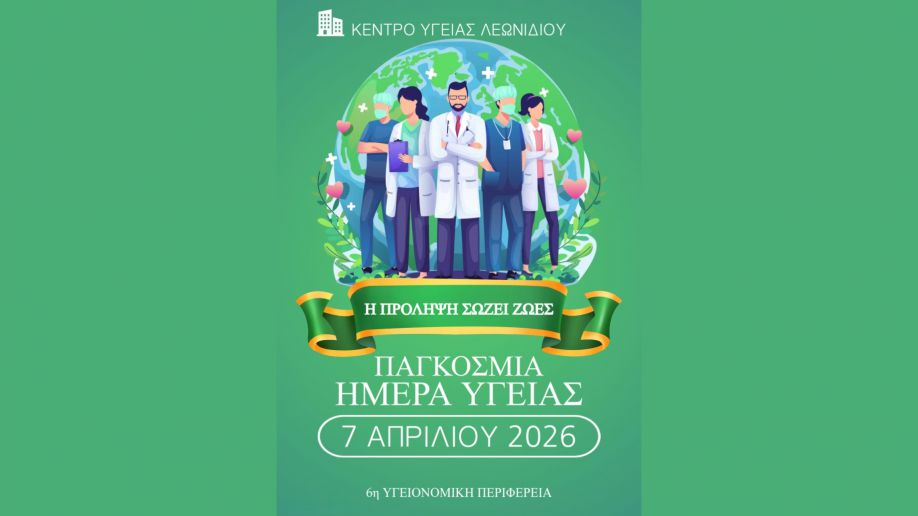 Το Κέντρο Υγείας Λεωνιδίου με αφορμή την Παγκόσμια Ημέρα Υγείας στις 7 Απριλίου 2026 και με την υποστήριξη της 6ης Υ.ΠΕ. συμμετέχει στην εκστρατεία και ενημερώνει τους πολίτες για τα οφέλη του εμβολιασμού και την υλοποίηση προγραμμάτων προσυμπτωματικού ελέγχου.