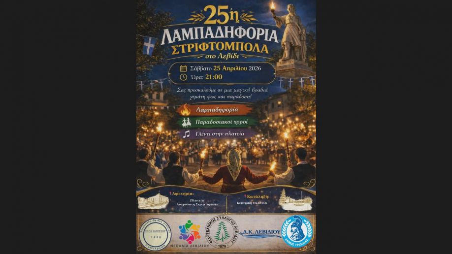 Το Σάββατο 25 Απριλίου στις 21:00, η 25η Λαμπαδηφορία Στριφτόμπολα στο Λεβίδι έρχεται να φωτίσει τις καρδιές μας