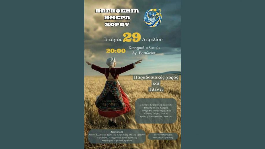 Με στόχο τη διατήρηση και ανάδειξη της ελληνικής παράδοσης, χιρευτικοί σύλλογοι της Τρίπολης διοργανώνουν μια ξεχωριστή πολιτιστική εκδήλωση για την Παγκόσμια ημέρα χορού, την Τετάρτη 29 Απριλίου.
