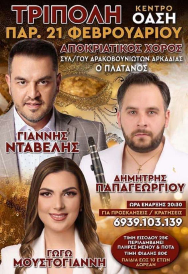 Σύλλογος Δρακοβουνιωτών | Αποκριάτικο γλέντι στην Τρίπολη! Κατηγορία Ατζεντα 08 Φεβ 2023 Διαβάστε περισσότερα...