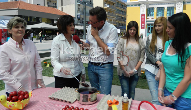 τον τρόπο που παρασκευάζονται τα πασχαλινά τσουρέκια, με τη βοήθεια μάλιστα εθελοντών, ένα καινούριο στοιχείο για τον φετινό πασχαλινό εορτασμό στην πόλη μας. Κατόπιν το συνεργείο μετέβη στην πλατεία Πετρινού όπου εθελόντριες έδειξαν στην κάμερα τον τρόπο με τον οποίο βάφονται κόκκινα τα αυγά. Ο δημοσιογράφος Σ. Χρήστου έδειξε ιδιαίτερο ενδιαφέρον στην σημασία που έχει ο εθελοντισμός στις μέρες μας και πως φέτος στην Τρίπολη χάρης αυτού κάποιοι άνθρωποι που δεν έχουν την οικονομική δυνατότητα να προσφύγουν σε αγορές θα περάσουν καλά. Στην πλατεία ήταν παρών και ο δήμαρχος Τρίπολης Γιάννης Σμυρνιώτης, ο οποίος μίλησε για τη δράση αυτή.