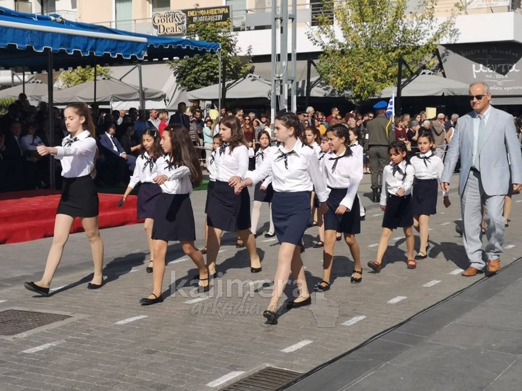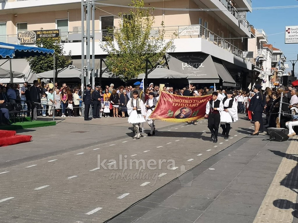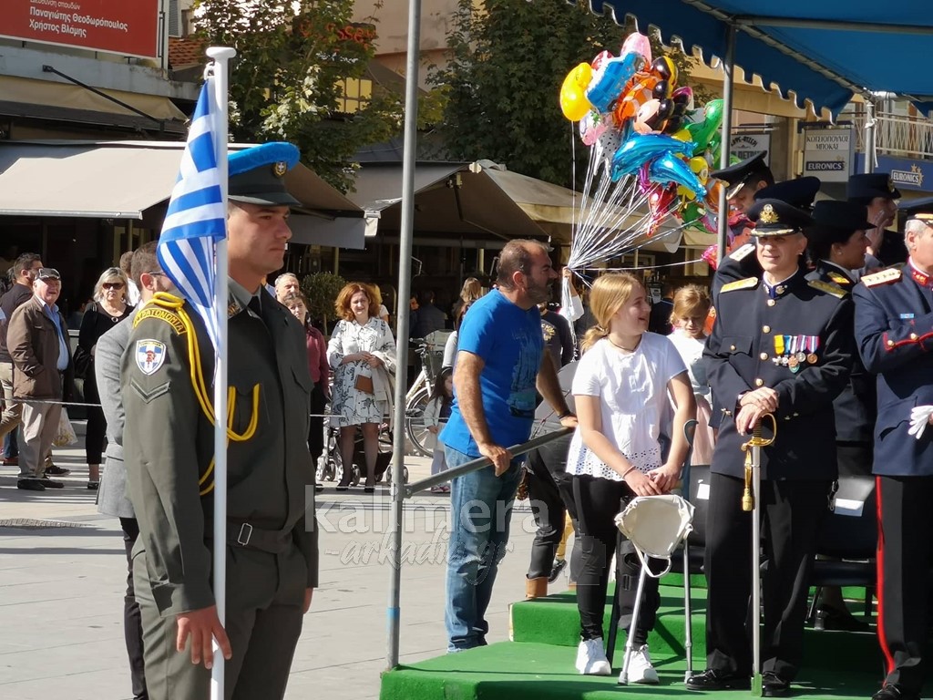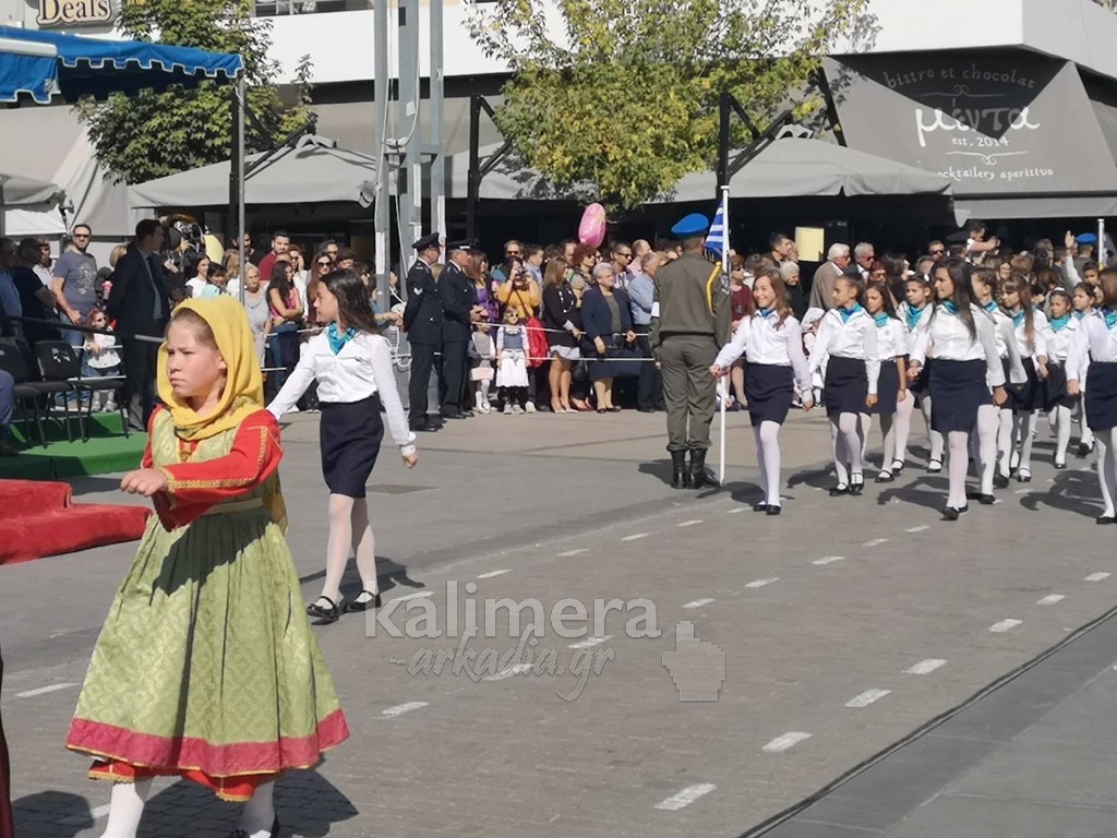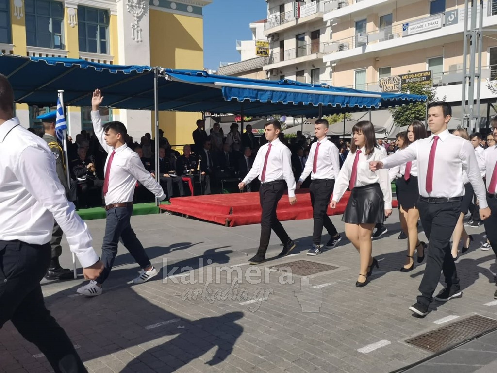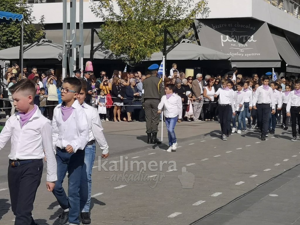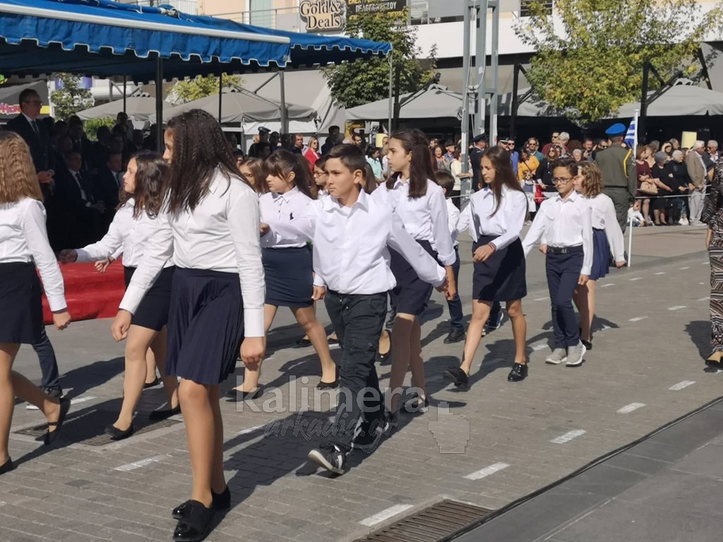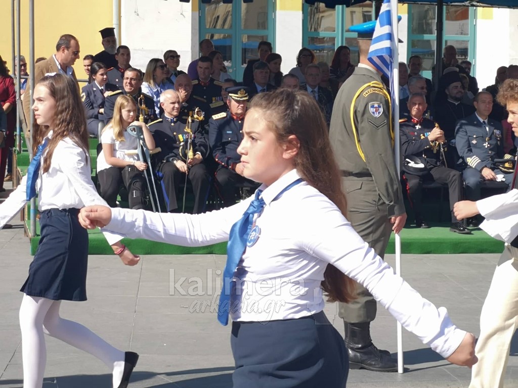 Με ηλιοφάνεια έγινε η παρέλαση για την επέτειο της 28ης Οκτωβρίου, στην πόλη της Τρίπολης, στο δρόμο της επί της οδού "Εθνικής Αντίστασης".