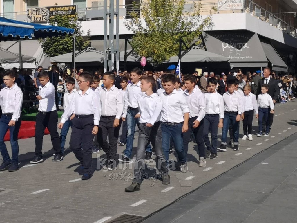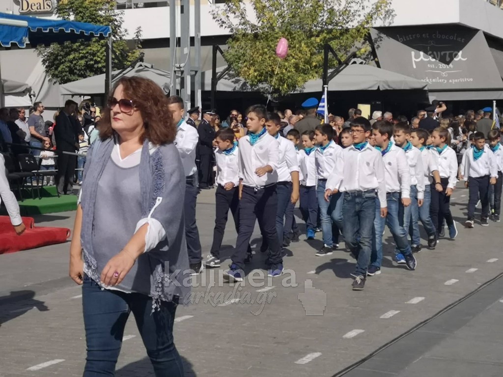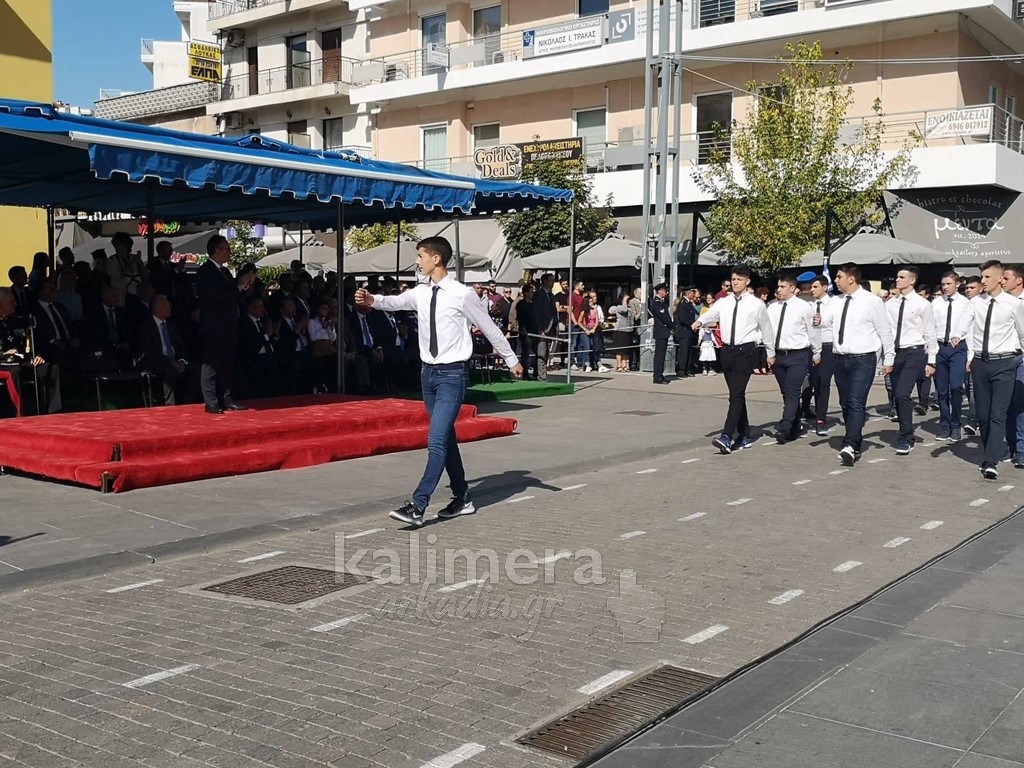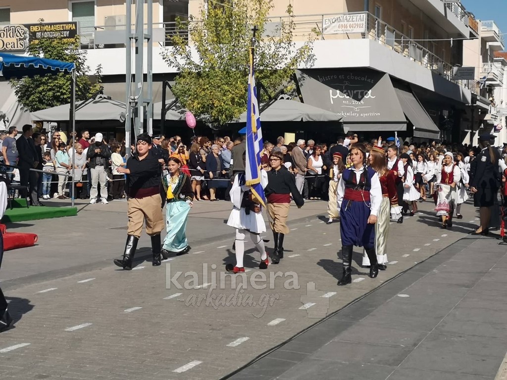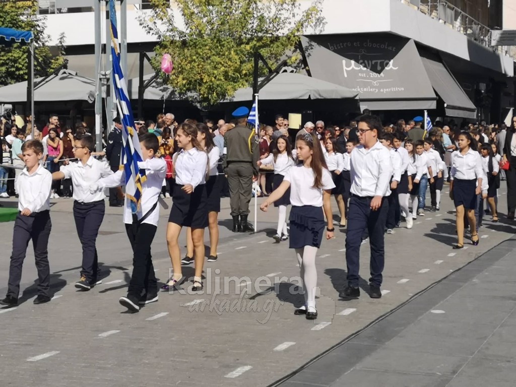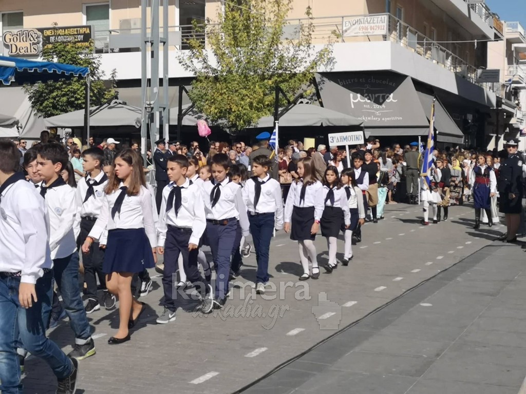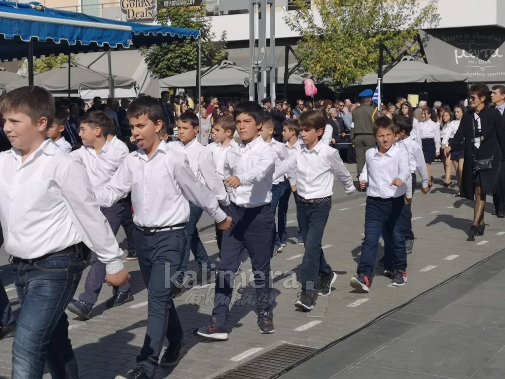 Με ηλιοφάνεια έγινε η παρέλαση για την επέτειο της 28ης Οκτωβρίου, στην πόλη της Τρίπολης, στο δρόμο της επί της οδού "Εθνικής Αντίστασης".