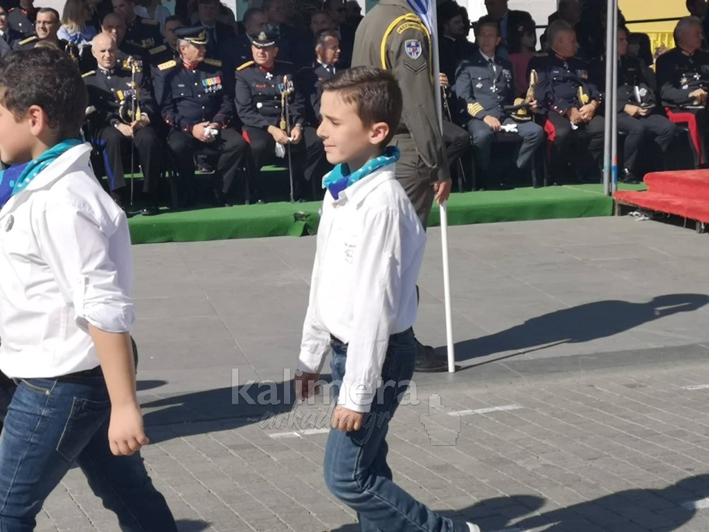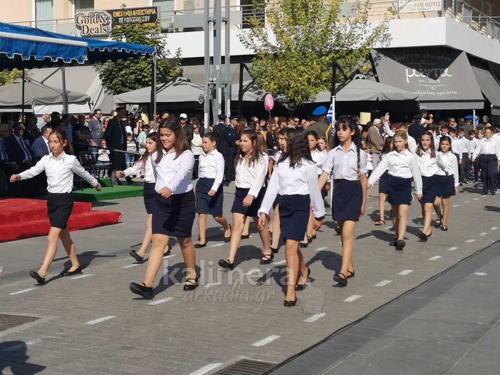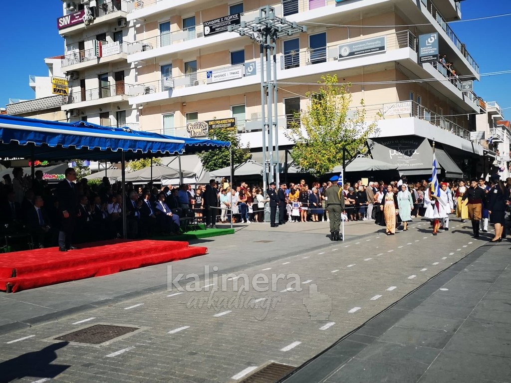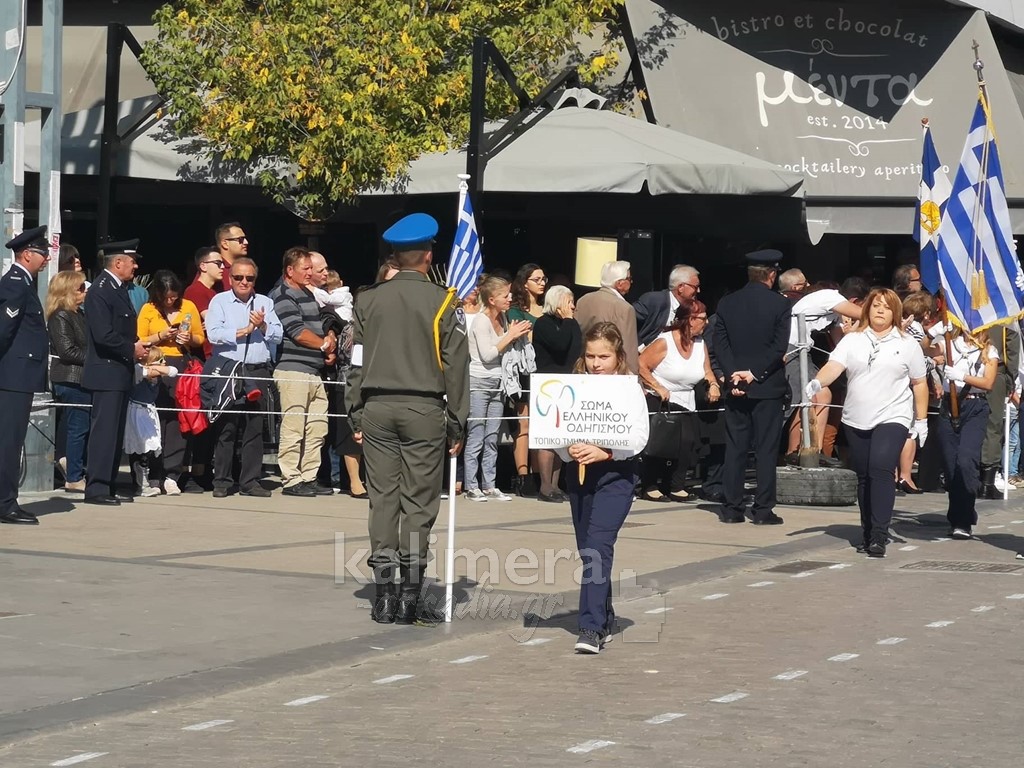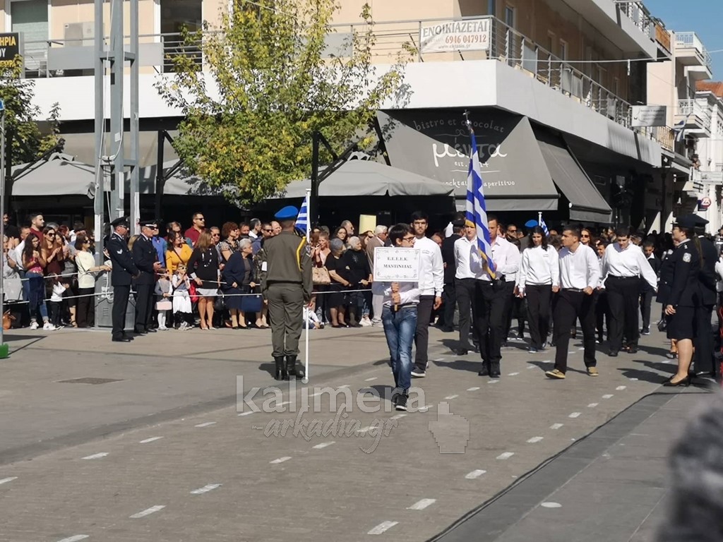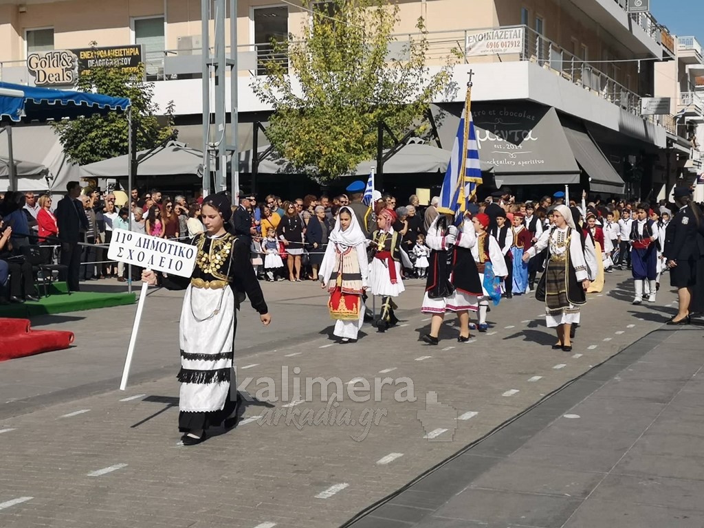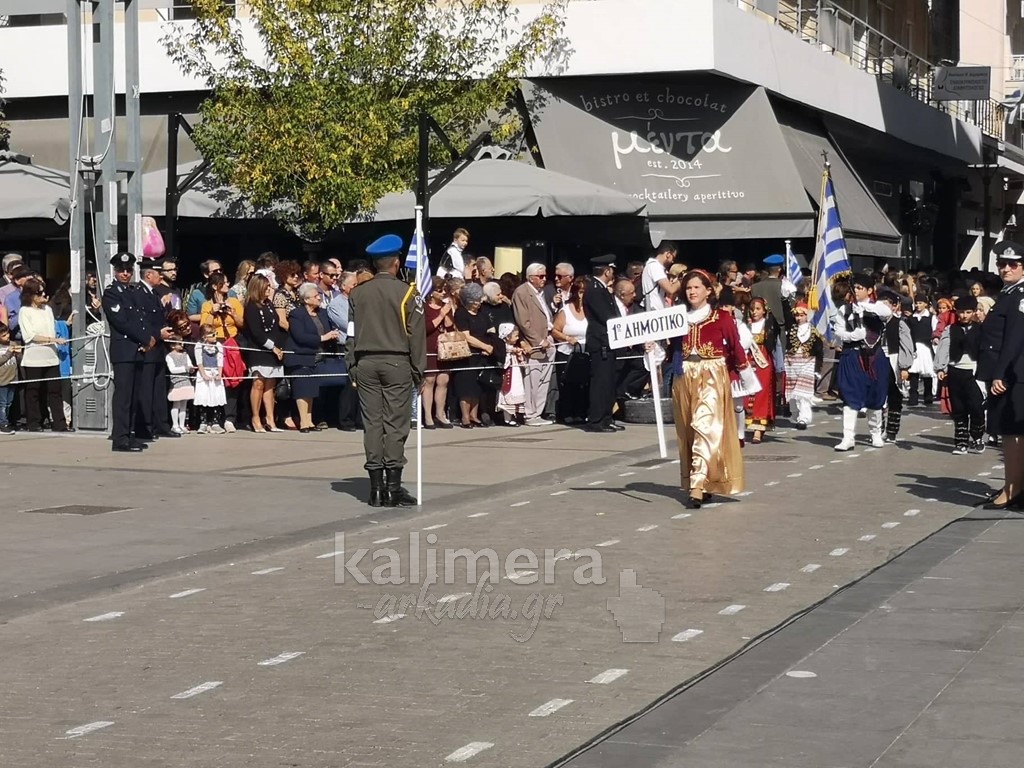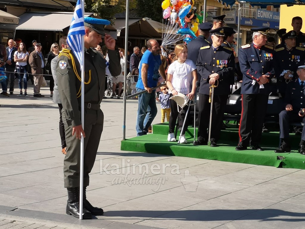 Με ηλιοφάνεια έγινε η παρέλαση για την επέτειο της 28ης Οκτωβρίου, στην πόλη της Τρίπολης, στο δρόμο της επί της οδού "Εθνικής Αντίστασης".