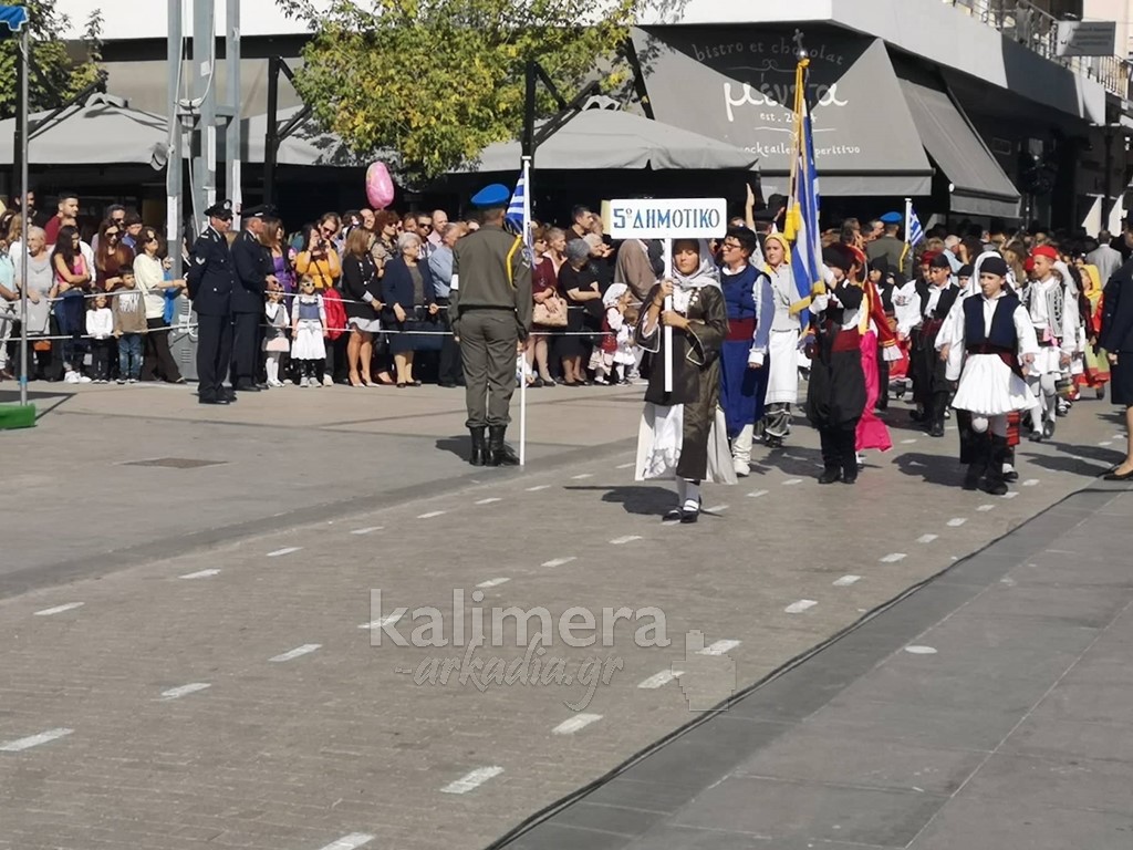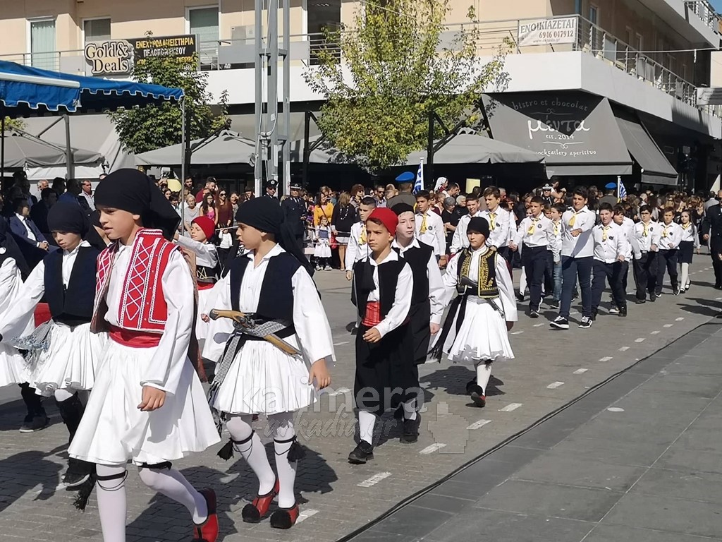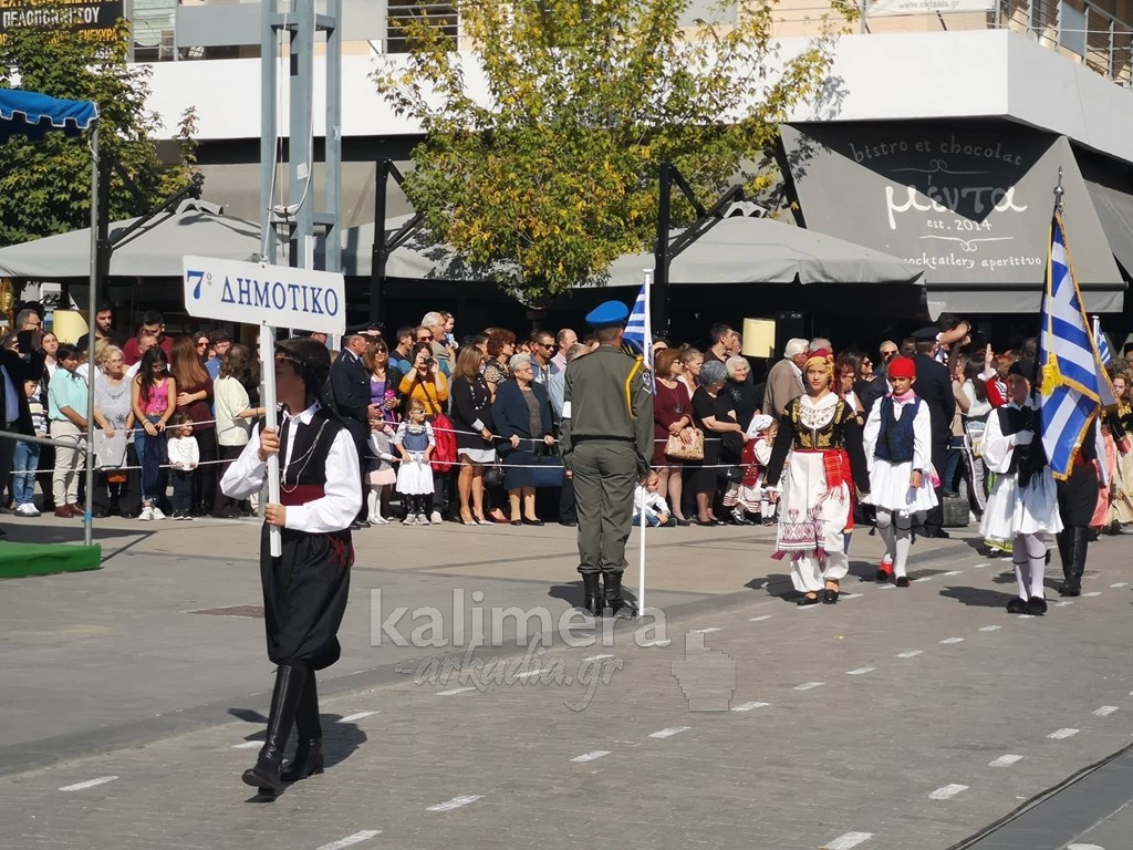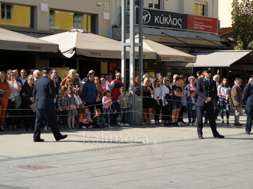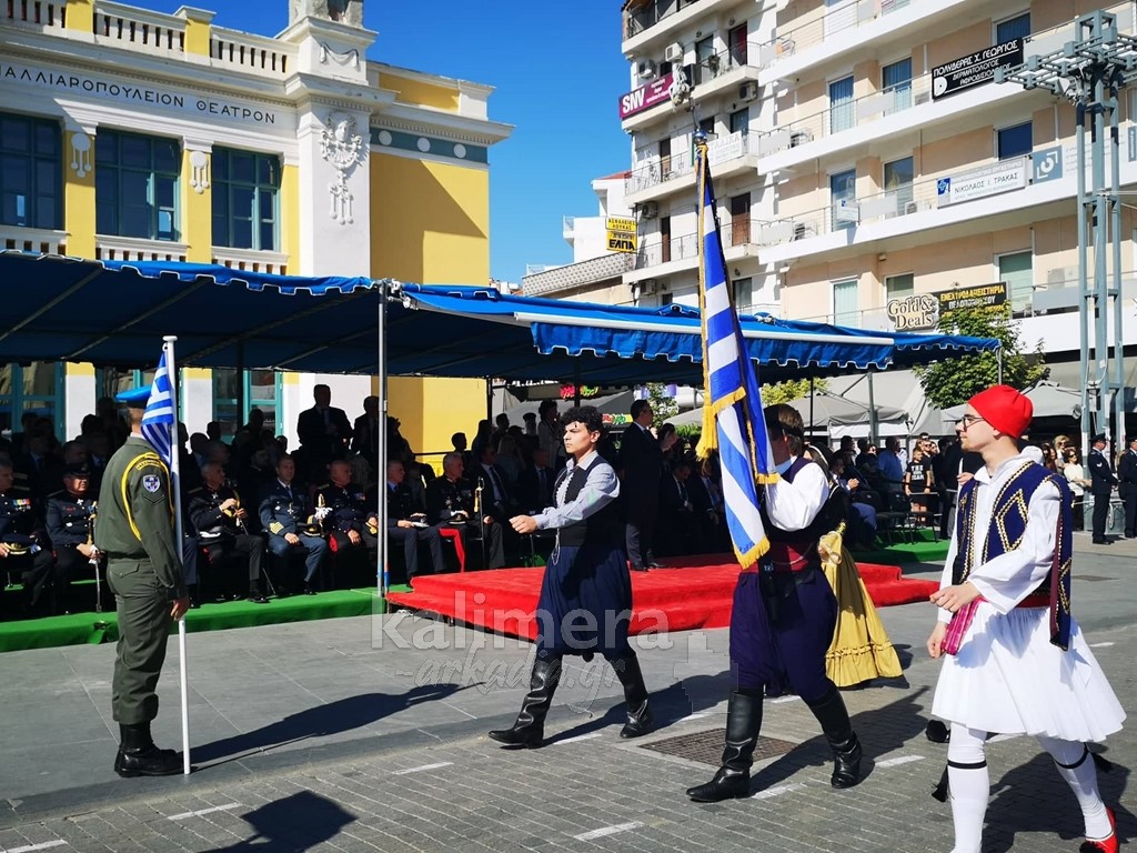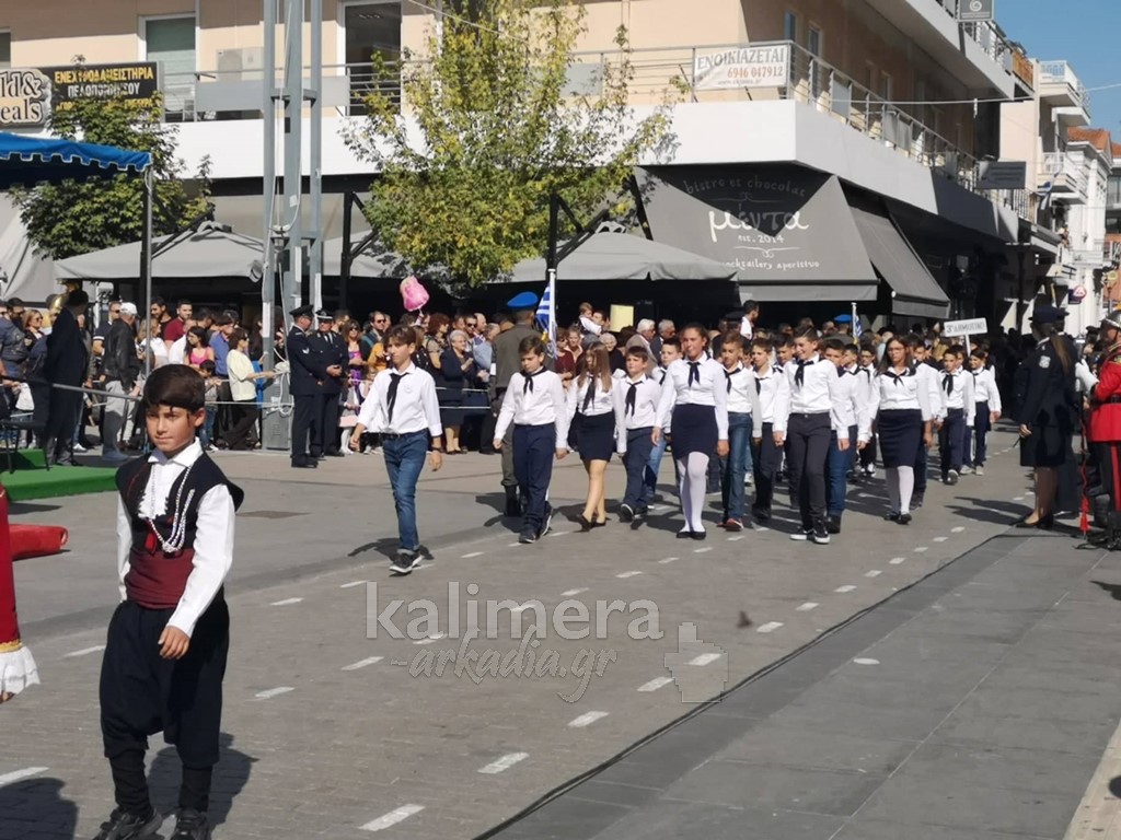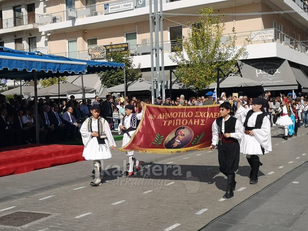 Με ηλιοφάνεια έγινε η παρέλαση για την επέτειο της 28ης Οκτωβρίου, στην πόλη της Τρίπολης, στο δρόμο της επί της οδού "Εθνικής Αντίστασης".