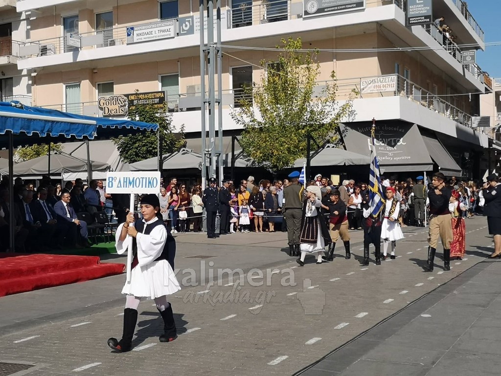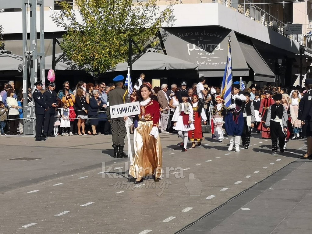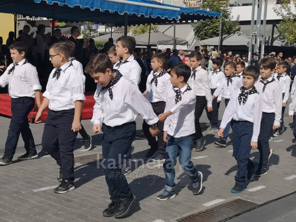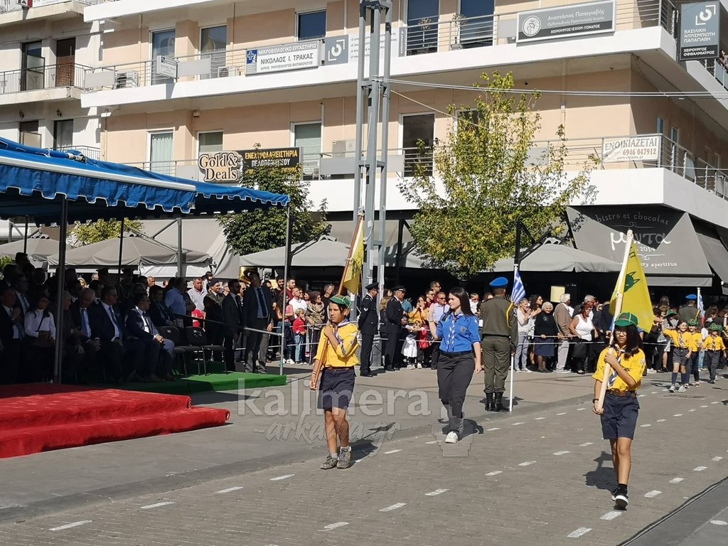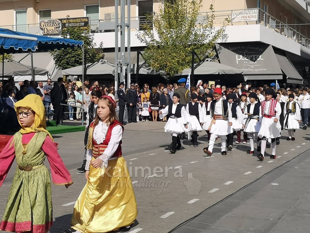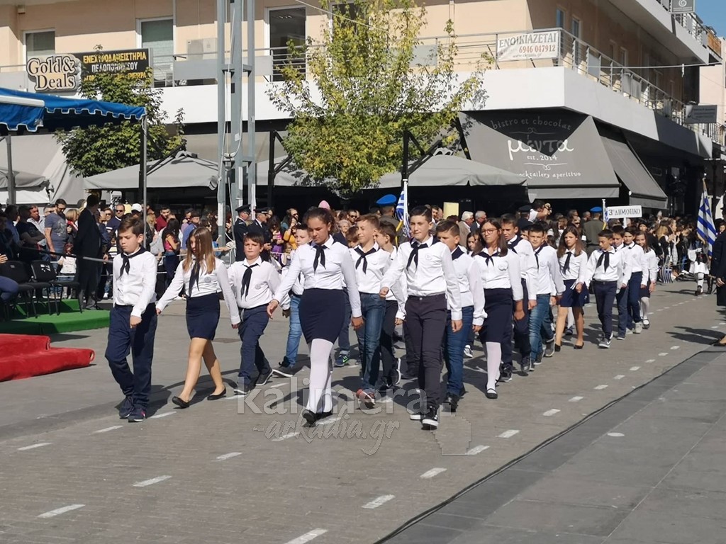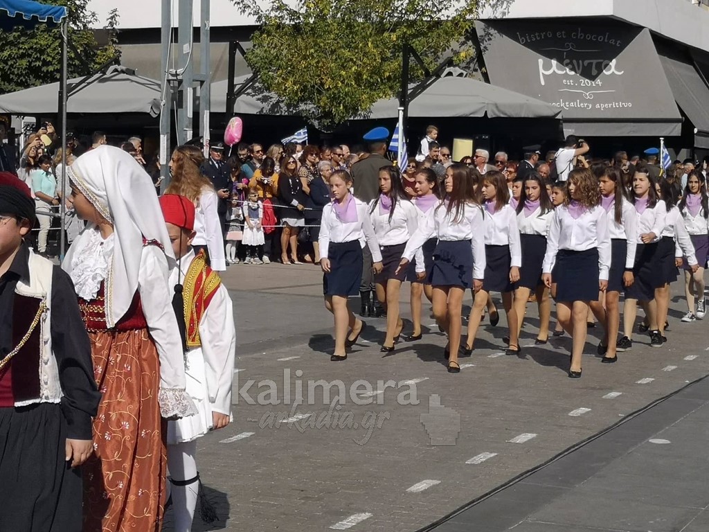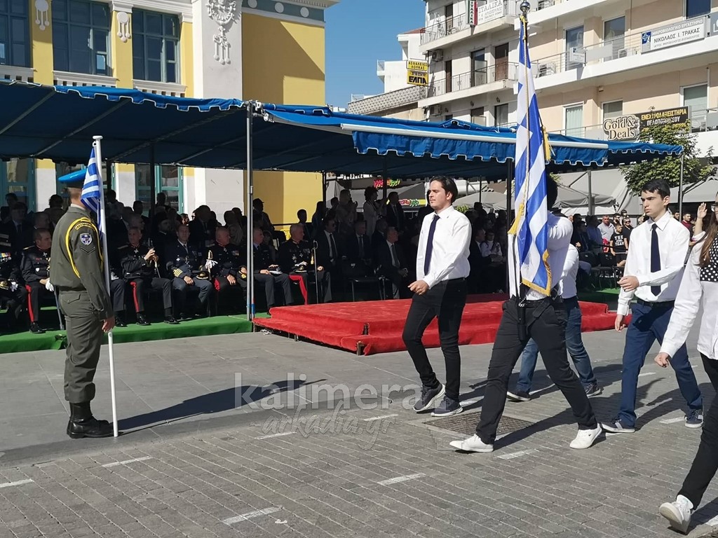 Με ηλιοφάνεια έγινε η παρέλαση για την επέτειο της 28ης Οκτωβρίου, στην πόλη της Τρίπολης, στο δρόμο της επί της οδού "Εθνικής Αντίστασης".