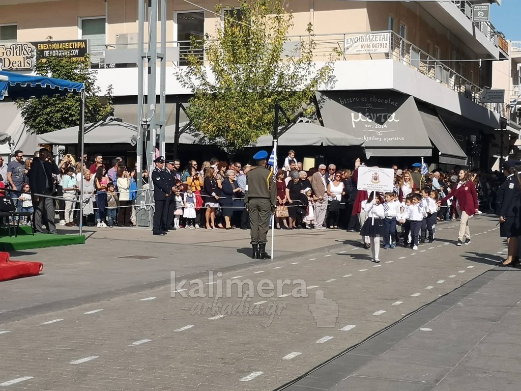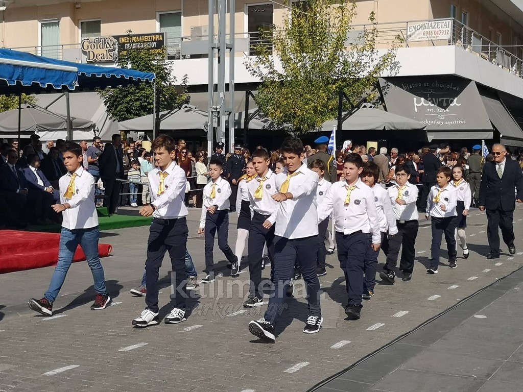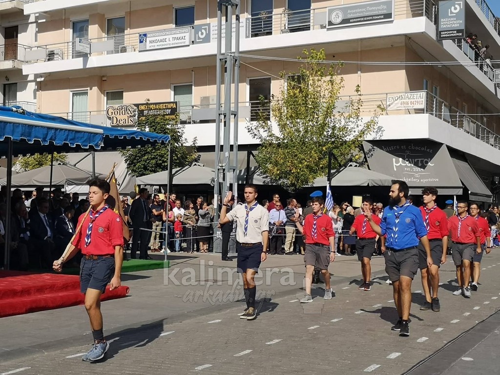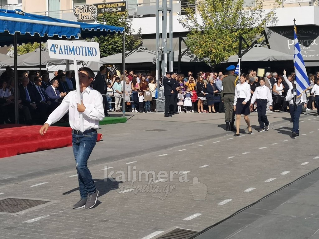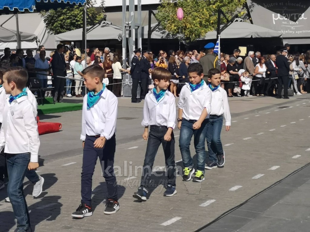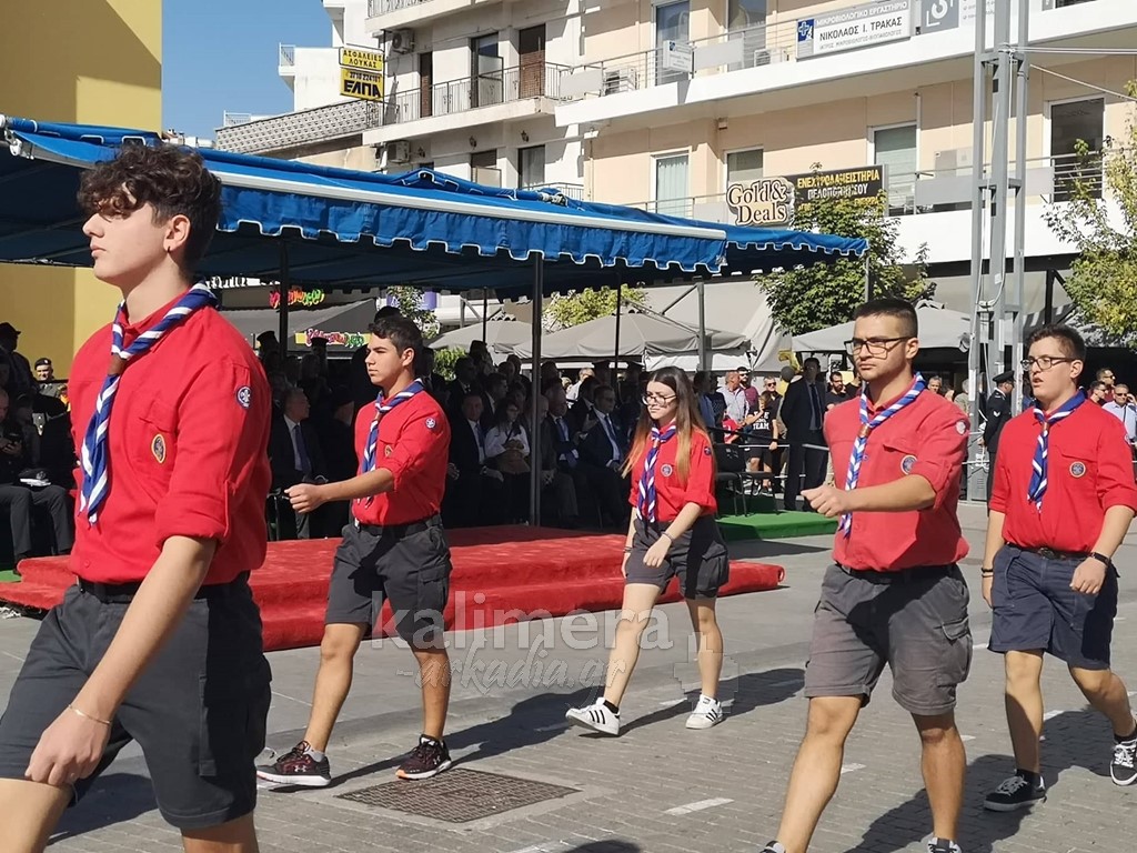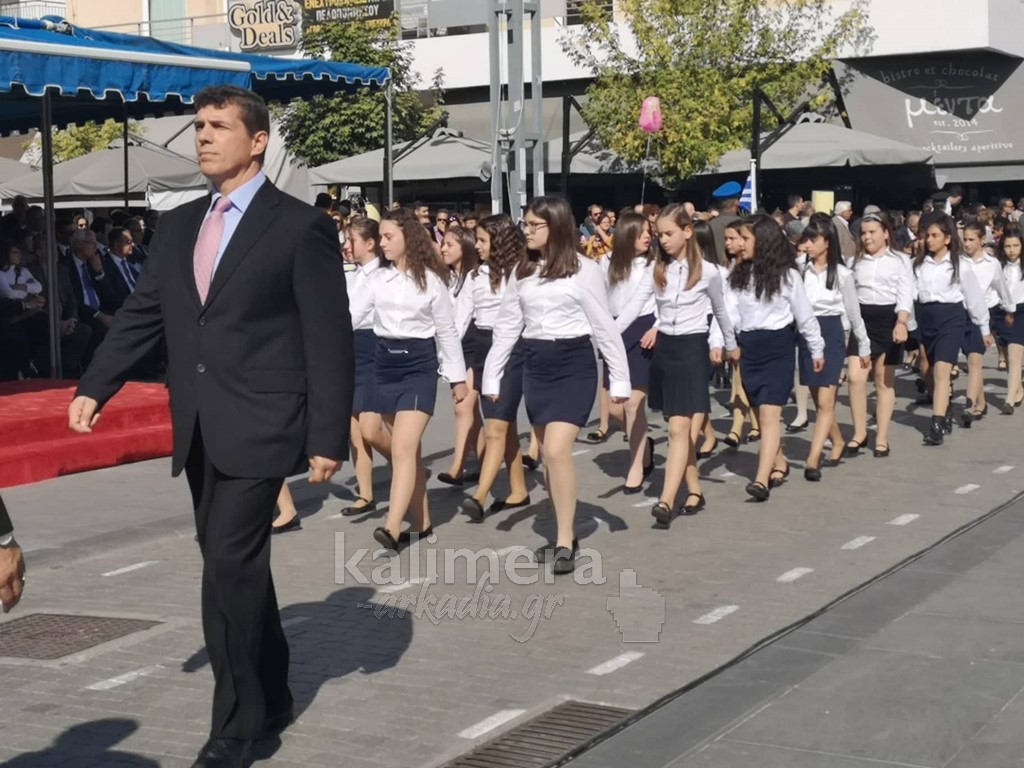 Με ηλιοφάνεια έγινε η παρέλαση για την επέτειο της 28ης Οκτωβρίου, στην πόλη της Τρίπολης, στο δρόμο της επί της οδού "Εθνικής Αντίστασης".