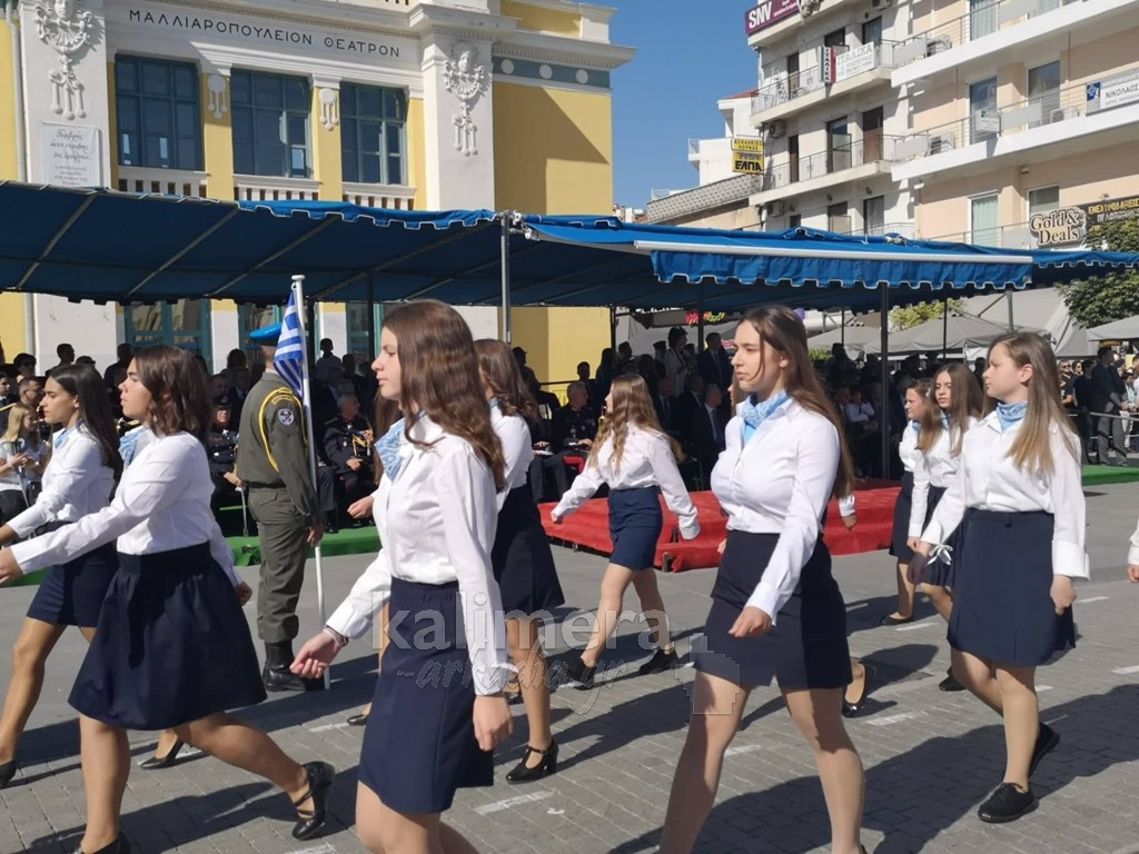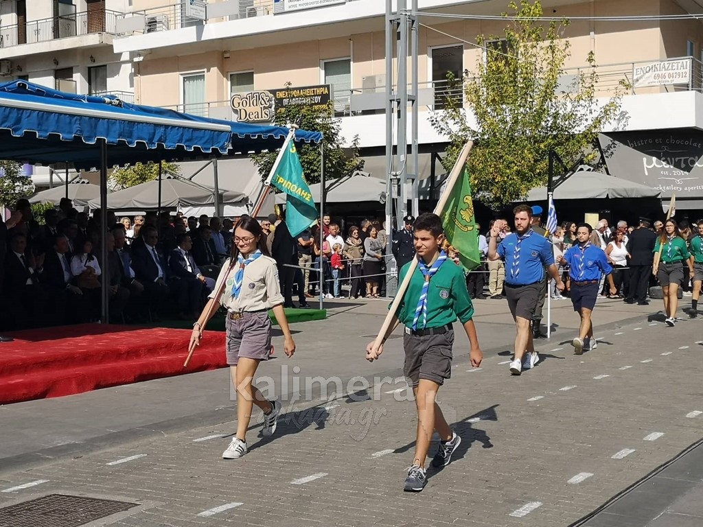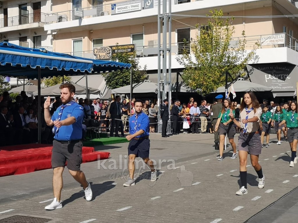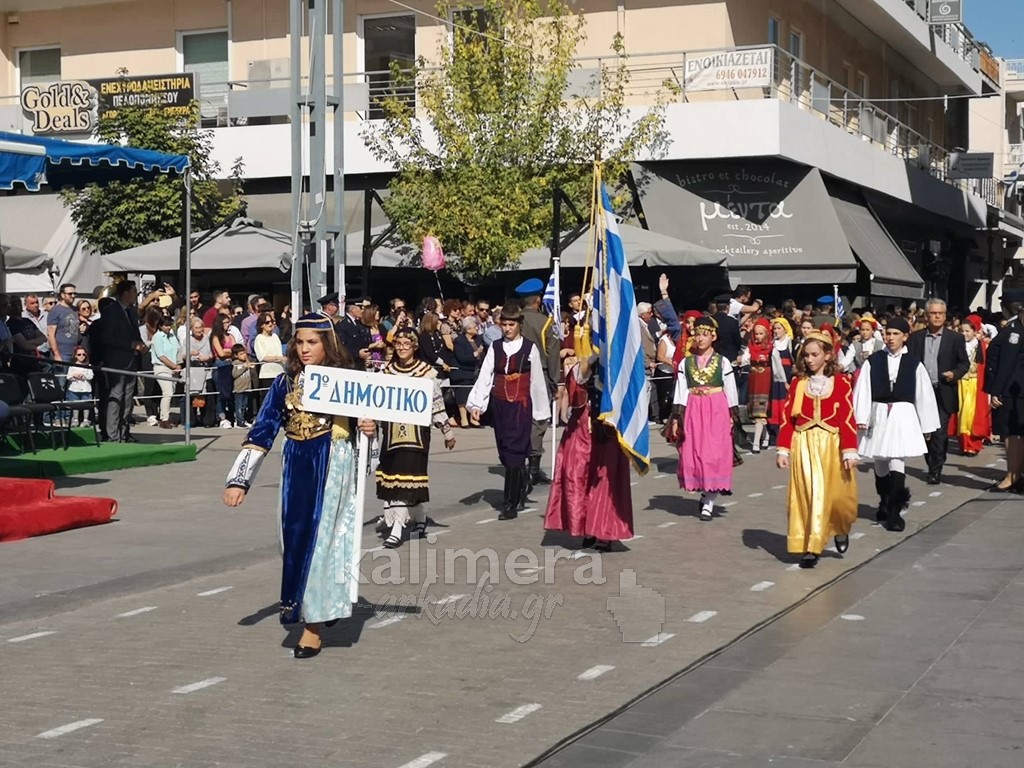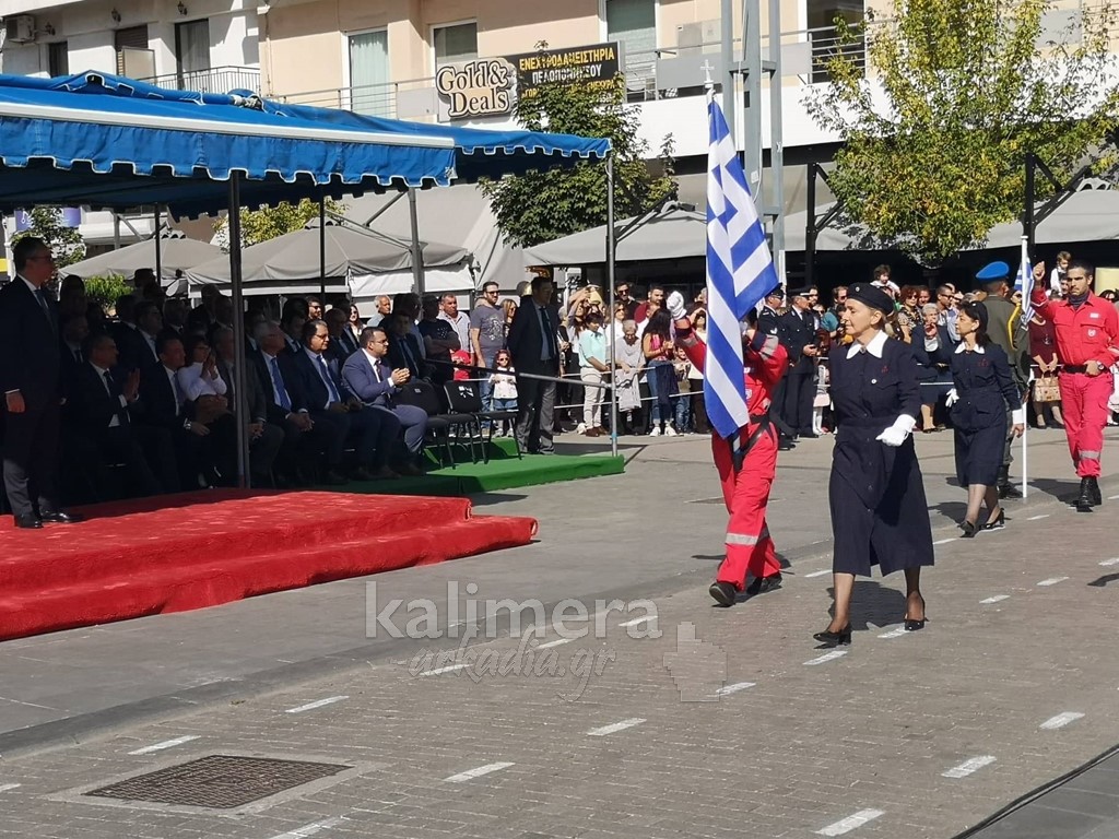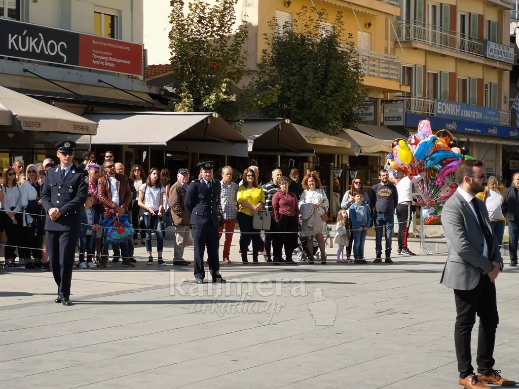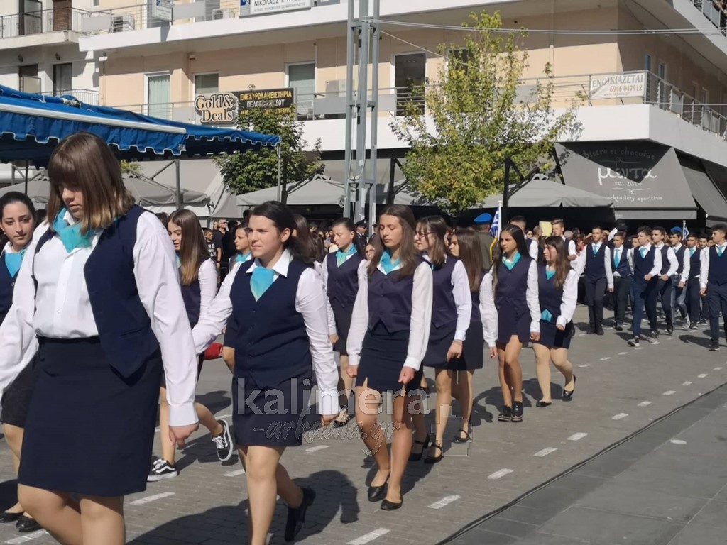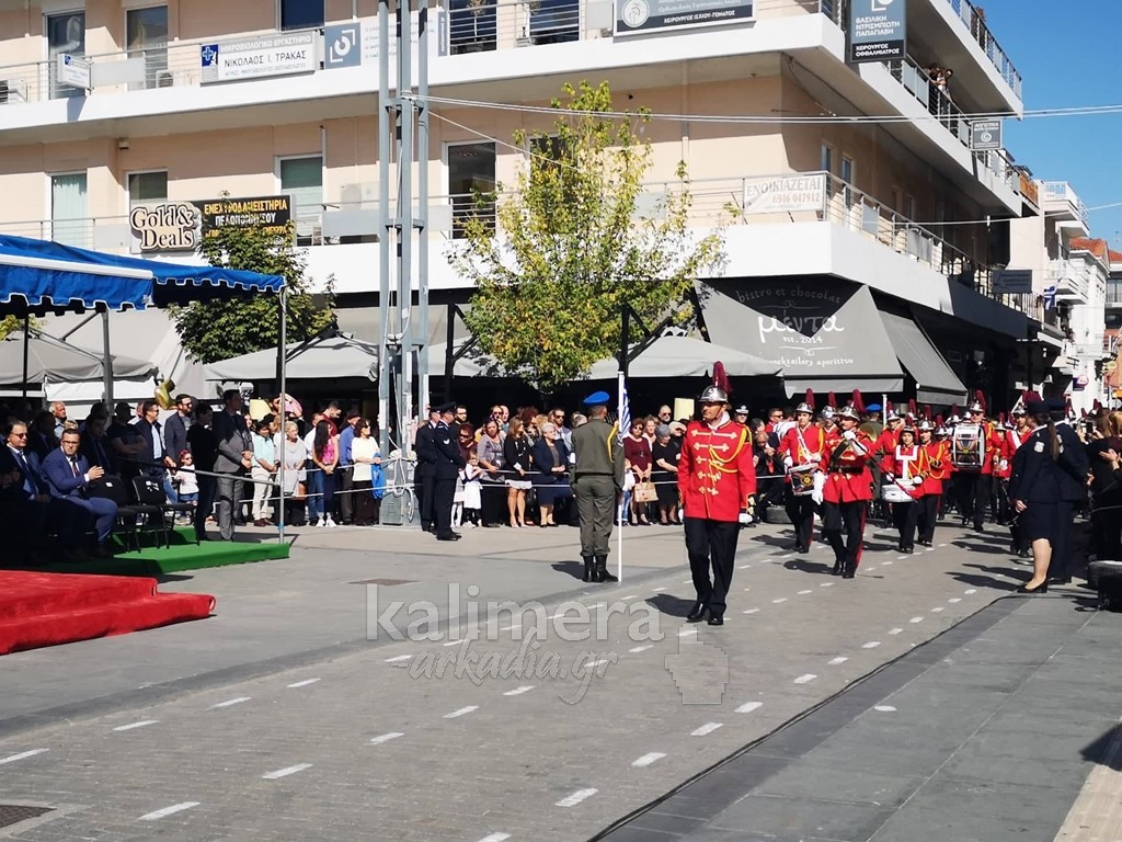Με ηλιοφάνεια έγινε η παρέλαση για την επέτειο της 28ης Οκτωβρίου, στην πόλη της Τρίπολης, στο δρόμο της επί της οδού "Εθνικής Αντίστασης".