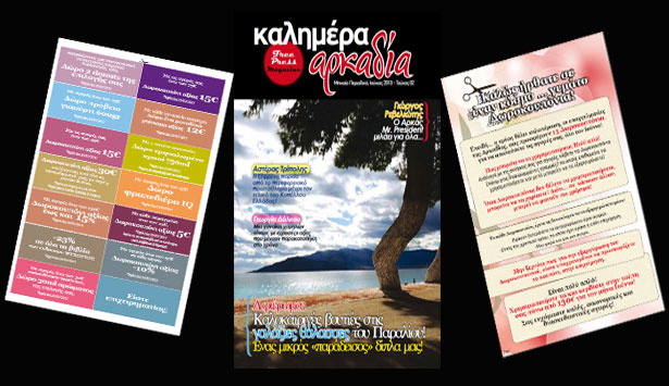 Στο περιοδικό «Καλημέρα Αρκαδία» και στο τεύχος του Ιουνίου 2013, που μόλις ξεκίνησε να κυκλοφορεί, υπάρχουν 13 δωροκουπόνια, από τοπικές επιχειρήσεις, με μοναδικές προφορές και εκπτώσεις, για οικονομικές αγορές.