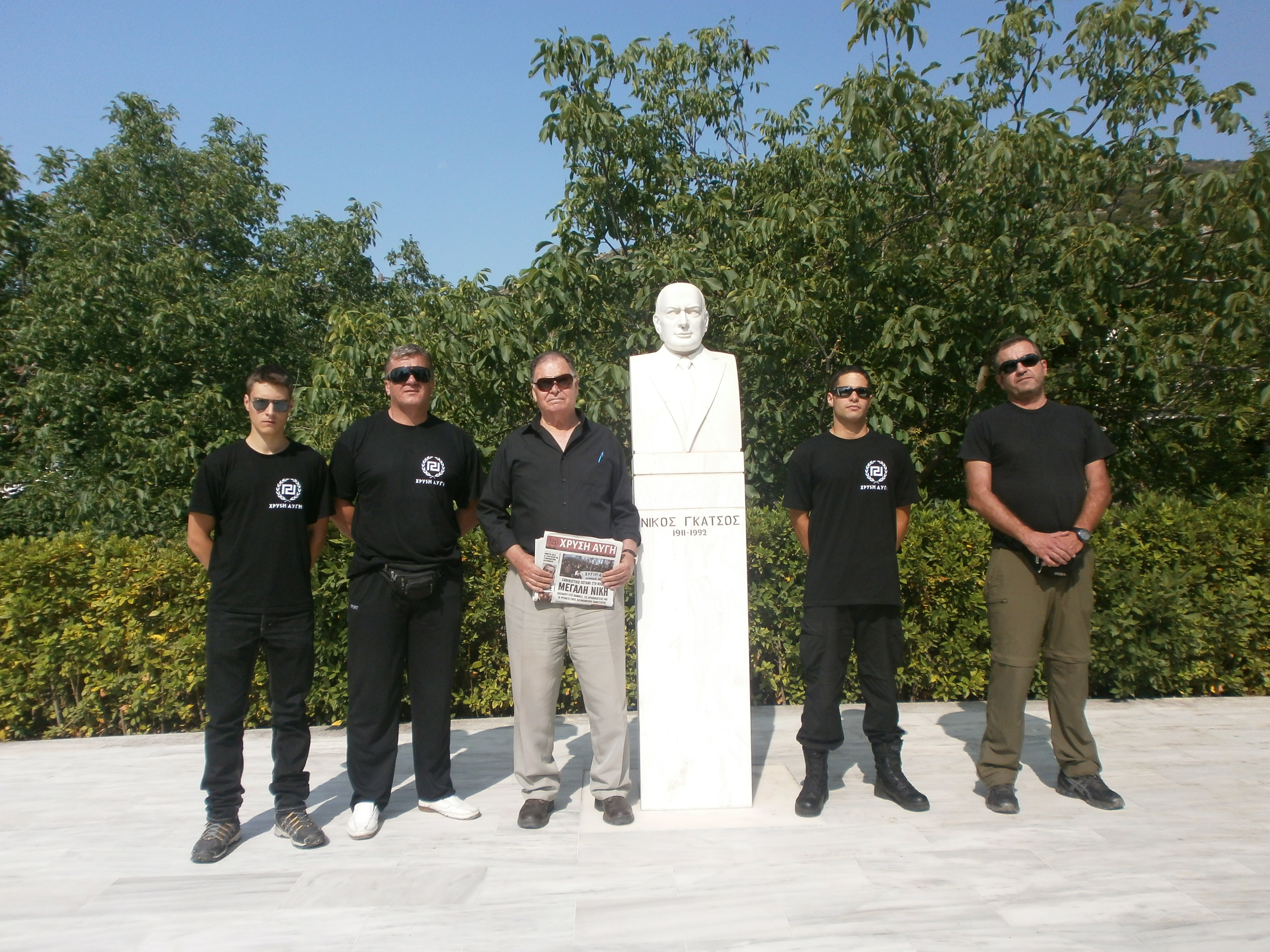 Τα μέλη της Τοπικής Οργανώσεως φωτογραφήθηκαν μπροστά στο μνημείο του Ν.Γκάτσου για το λόγο οτι είχε γράψει τούς πλέον επίκαιρους στίχους: