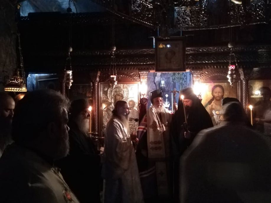 Προηγήθηκε ἡ Ἀκολουθία τοῦ Ἑσπερινοῦ, στήν ὁποία ἔλαβαν μέρος, ἐκτός τοῦ Ἡγουμένου τῆς Μονῆς Ἀρχιμανδρίτου Νεκταρίου, ὁ Ἡγούμενος τῆς Ἱ. Μονῆς Αἰμυαλῶν Ἀρκαδίας Ἀρχιμανδρίτης Δαμασκηνός καί ἄλλοι Ἀρχιμανδρίτες, Ἱερομόναχοι καί Κληρικοί τῆς Μητροπόλεως.