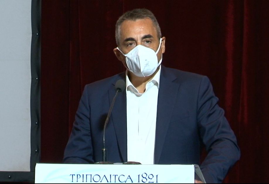Χαιρετισμό απέυθυνε ο Δήμαρχος Τρίπολης κ. Κώστας Τζιούμης, κατά τη διάρκεια της παρουσίασης του συμφωνικού έργου του κ. Γιώργου Κατραλή "Άλωση της Τριπολιτσάς", το βράδυ της Τρίτης (21/9/2021), στο Αποστολοπούλειο Πνευματικό Κέντρο, στο πλαίσιο των επετειακών εκδηλώσεων για την Άλωση της Τριπολιτσάς.