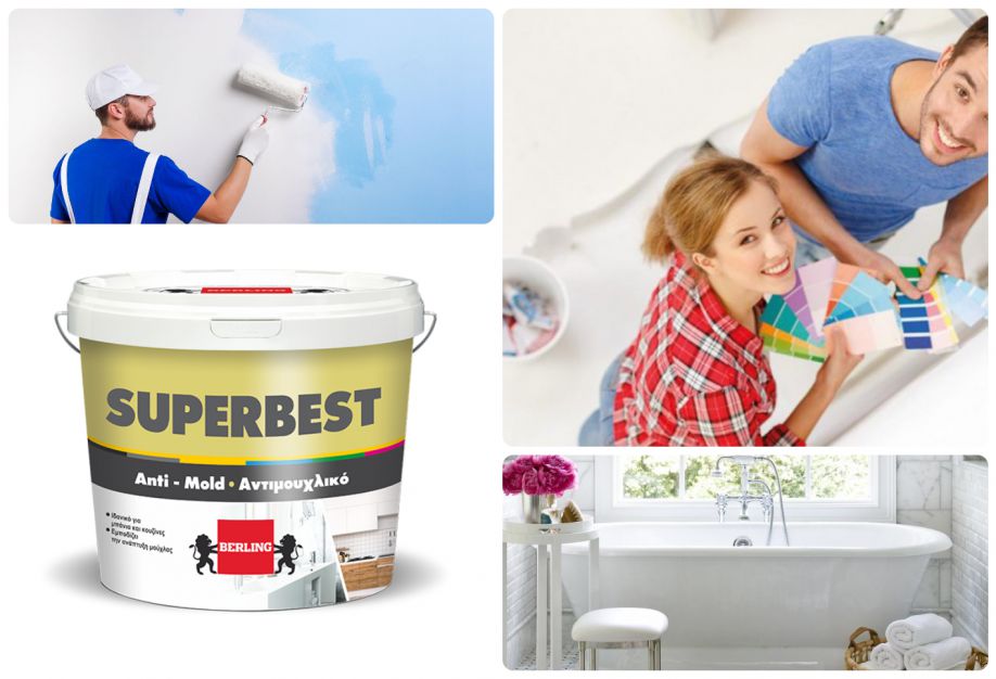 Τώρα με το ειδικό αντιμουχλικό υδατοδιάλυτο χρώμα SuperBest της ελληνικής εταιρείας Berling, όλα μπορούν να διορθωθούν εύκολα και γρήγορα!
