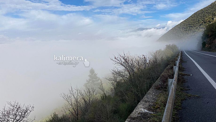 Το "Καλημέρα Αρκαδία" απαθανάτισε εντυπωσιακές εικόνες με ένα τεράστιο και πυκνό σύννεφο ομίχλης που είχε ... εξαφανίσει μια ολόκληρη περιοχή, λίγα χιλιόμετρα μετά τη Βλαχέρνα (προς τη Γορτυνία).