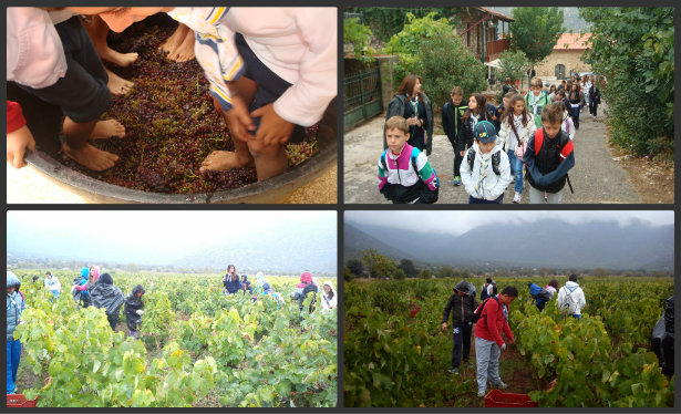 Ξεναγήθηκαν στο χωριό, τρύγησαν, πάτησαν σταφύλια- παρόλη τη μικρή βροχή που τους επισκέφθηκε -έμαθαν τον τρόπο παραγωγής του κρασιού και γεύτηκαν μουσταλευριά.