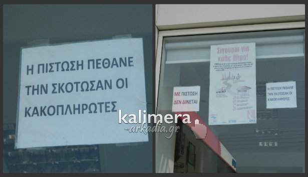 Η κάμερα του kalimera-arkadia.gr εντόπισε έναν τέτοιο επαγγελματία στη Μεγαλόπολη, ο οποίος μάλιστα στην επιγραφή του αναφέρει "η πίστωση πέθανε, τη σκότωσαν οι κακοπληρωτές" (ΦΩΤΟΓΡΑΦΙΑ)!
