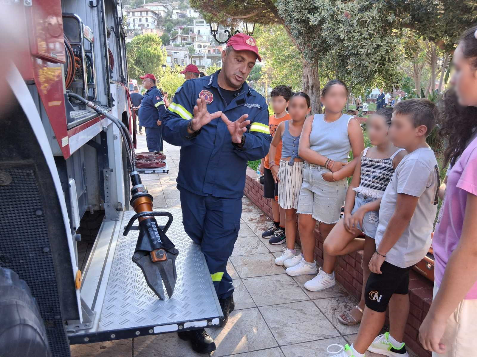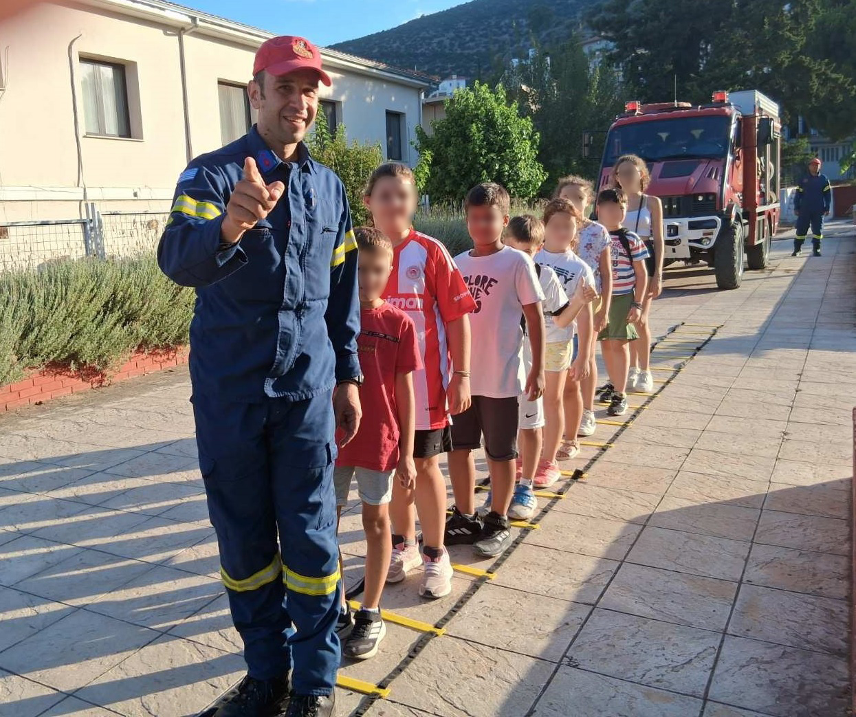 Παιδιά σχολικής ηλικίας με ενθουσιασμό, αυτοπεποίθηση και πειθαρχία, ακολουθώντας τις οδηγίες των πυροσβεστών συμμετείχαν σε όλες τις δράσεις παρακινώντας ακόμα και κάποιους διστακτικούς να ακολουθήσουν.