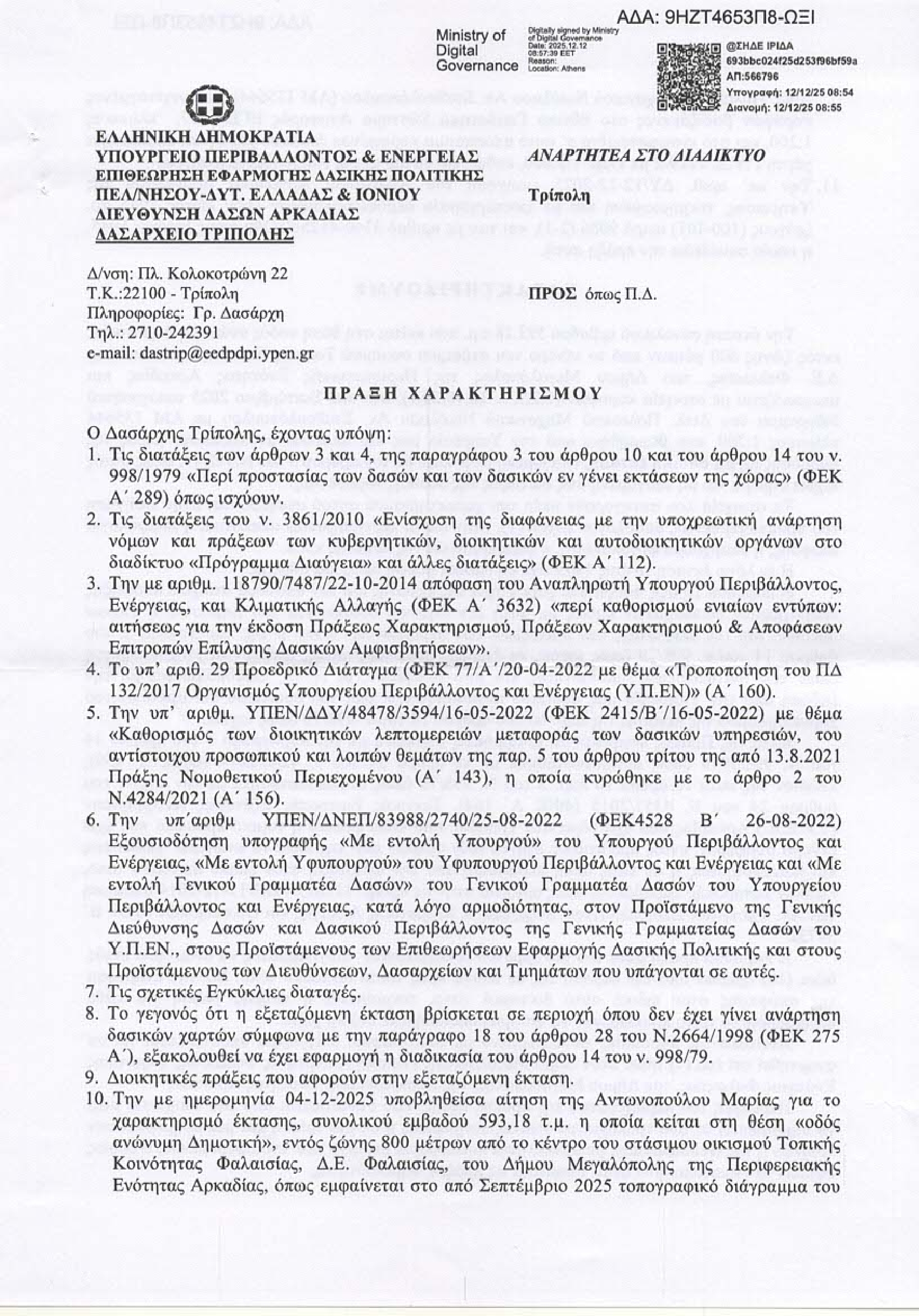 Δημοσιοποίηση πράξης χαρακτηρισμού έκτασης (Αρ. Πρωτ: 566796/12-12-2025)