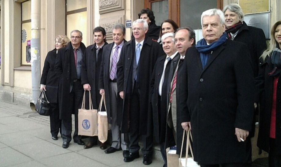 Ο Γενικός Πρόξενος της Ελλάδας στην Αγία Πετρούπολη κ. Θεόδωρος Μπιζάκης καλωσόρισε τον Δήμαρχο της Τρίπολης κ. Γιάννη Σμυρνιώτη, τον Πρόεδρο του Διοικητικού Συμβουλίου κ. Κώστα Ταλούμη, τους Αντιδημάρχους κ. Ηλία Τζανή και κ. Γιάννη Σαμπράκο, το δημοτικό σύμβουλο και πρώην Αντιδήμαρχο κ. Γιώργο Καρλή, την υπεύθυνη στα θέματα Πολιτισμού και Αθλητισμού δημοτική σύμβουλο κα. Χριστίνα Ζαμπαθά, τον Αντιπρόεδρο της Δ.Ε.Υ.Α.Τ. κ. Δημήτρη Τασιγιαννάκη, τον εντεταλμένο σύμβουλο για την αγροτική ανάπτυξη κ. Γιώργο Παπαδημητρίου, τον ειδικό σύμβουλο Πολιτισμού του Δημάρχου κ. Φώτη Σαββάκη αλλά και τους επιχειρηματίες κα. Μαριάννα Καλτεζιώτη και κ. Γιάννη Τρουπή.