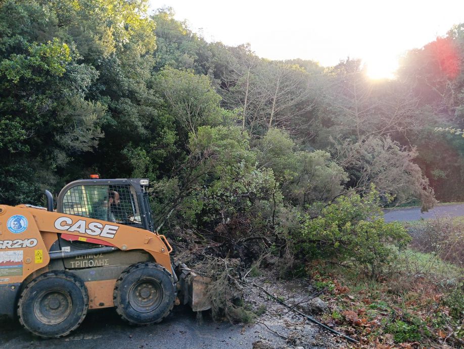 Από νωρίς το πρωί με μηχανήματα του Δήμου Τρίπολης παρουσία και της προέδρου της Δ.Κ. Αφροδίτης Τσιμογιάννης έγινε αποκατάσταση και διάνοιξη του δρόμου.