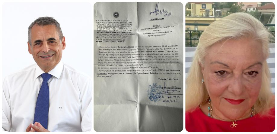 Σύμφωνα με το επίσημο έγγραφο της Ελληνικής Αστυνομίας, η κα. Παπαδοπούλου καλείται να προσέλθει την Τετάρτη 4 Μαρτίου 2026 στο Αστυνομικό Τμήμα Τρίπολης, προκειμένου να δώσει ανωμοτί εξηγήσεις στο πλαίσιο προκαταρκτικής εξέτασης. Η διαδικασία κινείται κατόπιν εγκλήσεως του κ. Τζιούμη, η οποία κατατέθηκε στις 18 Φεβρουαρίου 2026, και αφορά φερόμενα αδικήματα που σχετίζονται με συκοφαντική δυσφήμηση μέσω διαδικτύου. Στο έγγραφο γίνεται αναφορά σε συγκεκριμένα άρθρα του Ποινικού Κώδικα και επισημαίνεται ότι η κλήση είναι υποχρεωτική, βάσει παραγγελίας της Εισαγγελίας Πρωτοδικών Τρίπολης.