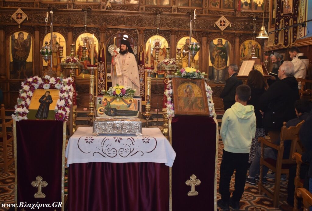 Την παραμονή του Οσίου Λεοντίου, στον Ιερό Ναό του Αγίου Αθανασίου Βλαχέρνας τελέστηκε Πανηγυρικός Εσπερινός μετά αρτοκλασίας, προς τιμή του Οσίου Λεοντίου. Στο κέντρο του ναού είχαν τοποθετηθεί προς προσκύνηση η λειψανοθήκη με τα Ιερά λείψανα του Οσίου, το επιτραχήλιο του, η πατερίτσα του καθώς και η Ιερά εικόνα της Παναγίας Βλαχέρνας.
