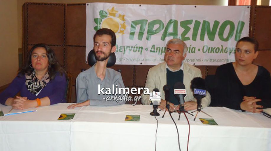 Στην Τρίπολη ήρθε σήμερα κλιμάκιο με υποψήφιους ευρωβουλευτές των Πρασίνων. Για το λόγο αυτό, δόθηκε συνέντευξη τύπου κατά την οποία μίλησαν ο Ευρωβουλευτής των Πράσινων, Νίκος Χρυσόγελος και οι συνυποψήφιοι του με το ευρωψηφοδέλτιο “ΠΡΑΣΙΝΟΙ” : Όλγα Θεωοδρικάκου, Στέλιος Κυμπουρόπουλος, Ναταλία Μποφίλιου και Χριστίνα Καλάθα.