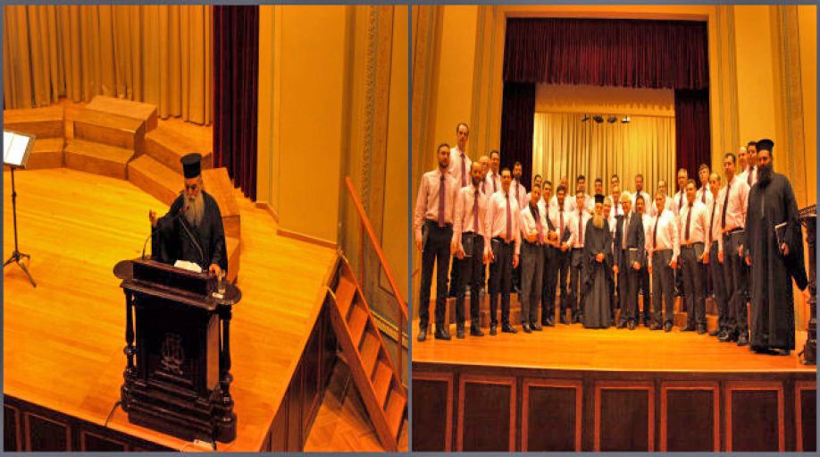 Τριδικούς ύμνους έψαλε ο διεθνούς φήμης βυζαντινός χορός «ΕΡΓΑΣΤΗΡΙ ΨΑΛΤΙΚΗΣ» υπό την διεύθυνση του κ. Αθανασίου Παϊβανά. Η άψογη εκτέλεση των ύμνων – ορισμένοι από τους οποίους αποδόθηκαν χορωδιακώς για πρώτη φορά – συγκίνησε το ακροατήριο.
