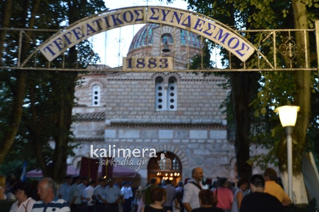 Αρχικά τελέστηκε Μέγας Εσπερινός, ακολούθησε λιτάνευση της Εικόνας της Παναγίας, τα εγκαίνια της Έκθεσης Τεγέας και τέλος έγινε κέρασμα στον Προαύλιο χώρο της Οικοκυρικής Σχολής.