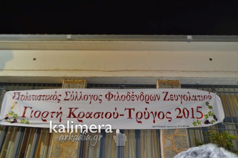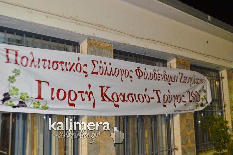 Γιορτή Κρασιού, έγινε το Σαββατόβραδο, στο χώρο του Δημοτικού Σχολείου, στο χωριό Ζευγολατιό! Τη γιορτή οργάνωσαν ο Δήμος Τρίπολης σε συνεργασία με τον Πολιτιστικό Σύλλογο Φιλοδένδρων Ζευγολατιού.