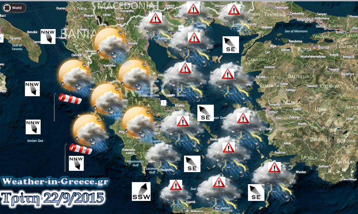 Μουντός,φθινοπωρινός και πολύ βροχερός θα ξεκινήσει ο καιρός στην Ήπειρο-δυτική Μακεδονία,Θεσσαλία,δυτική&κεντρική Στερεά Ελλάδα ,Πελοπόννησο.Γρήγορα μέσα στην ημέρα προς το μεσημέρι και το απόγευμα τα φαινόμενα θα κινηθούν προς την κεντρική&ανατολική Μακεδονία,την ανατολική Θεσσαλία-ανατολική Στερεά-Εύβοια-Σποράδες ,δυτική&κεντρική Κρήτη αλλά και στις Κυκλάδες.