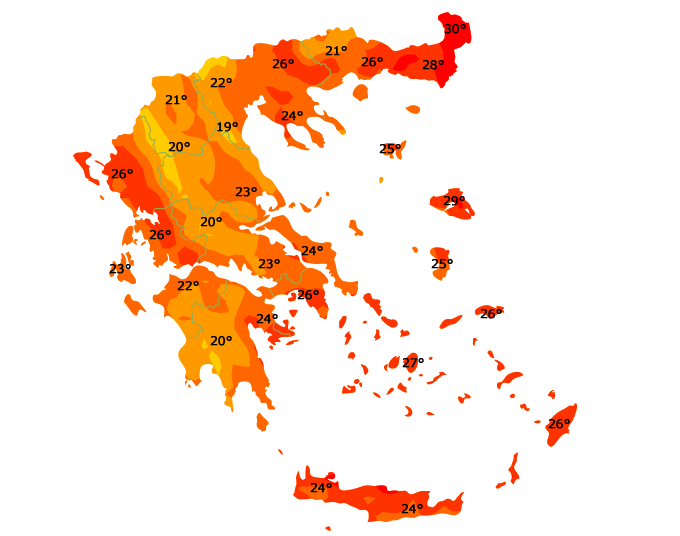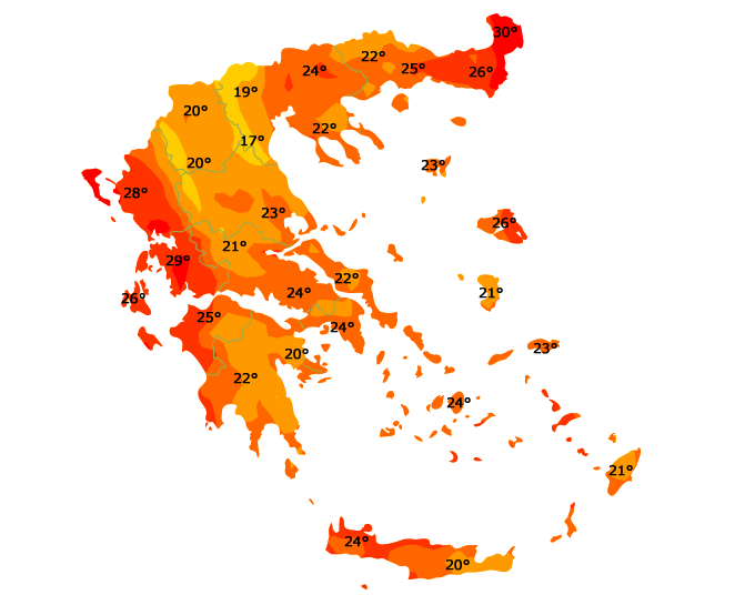 Δείτε τις μέγιστες θερμοκρασίες την Τρίτη: