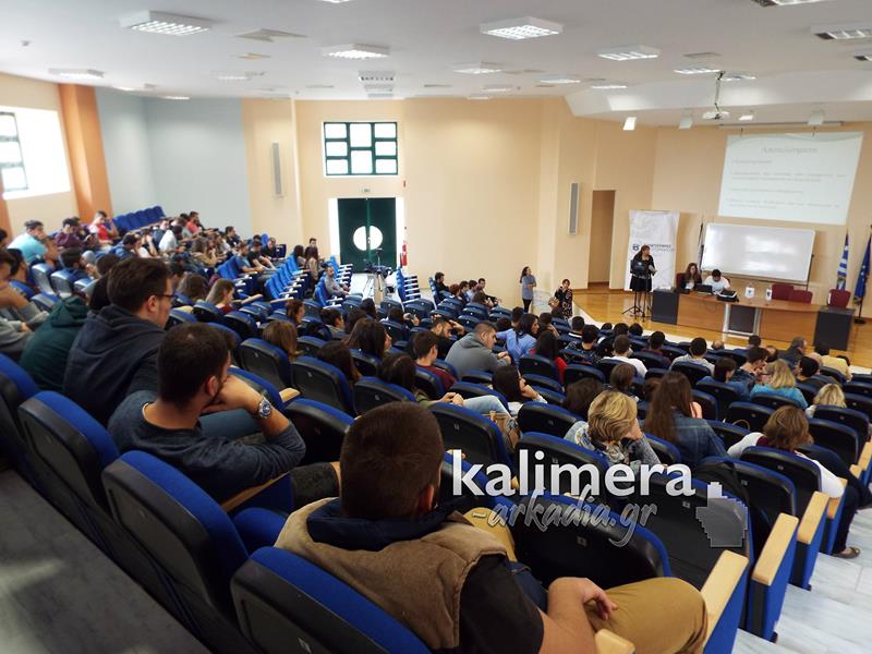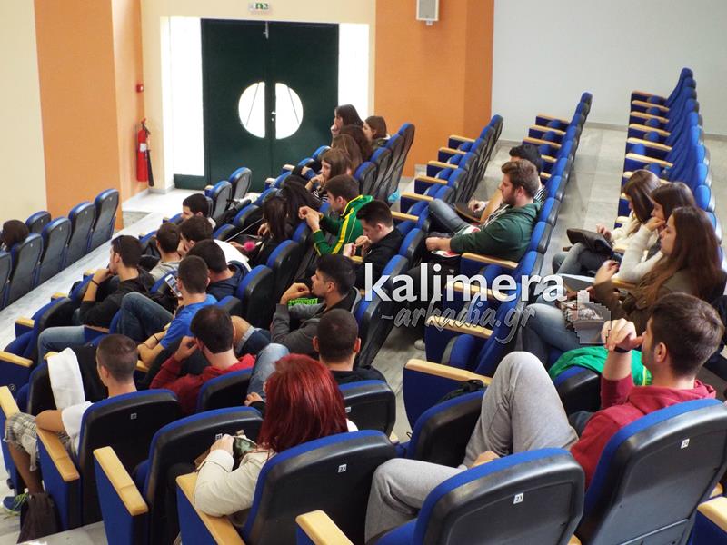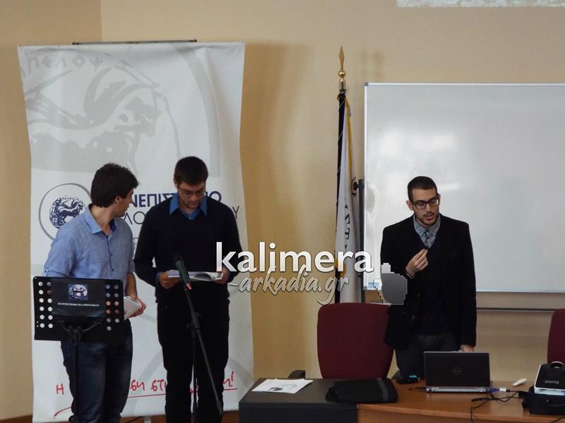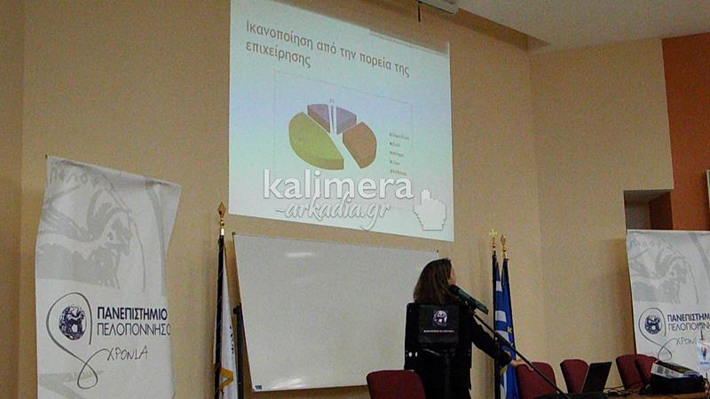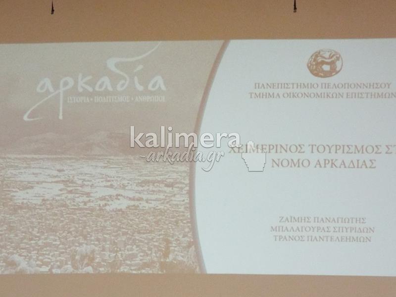 Εκδήλωση για την παρουσίαση εργασιών των φοιτητών της σχολής Επιστημών Οικονομίας με θέμα: «Χειμερινός τουρισμός στον Νόμο Αρκαδίας» πραγματοποιήθηκε σήμερα 20 Οκτωβρίου στο αμφιθέατρο της σχολής επιστημών οικονομίας, διοίκησης και πληροφορικής του Πανεπιστημίου Πελοποννήσου.