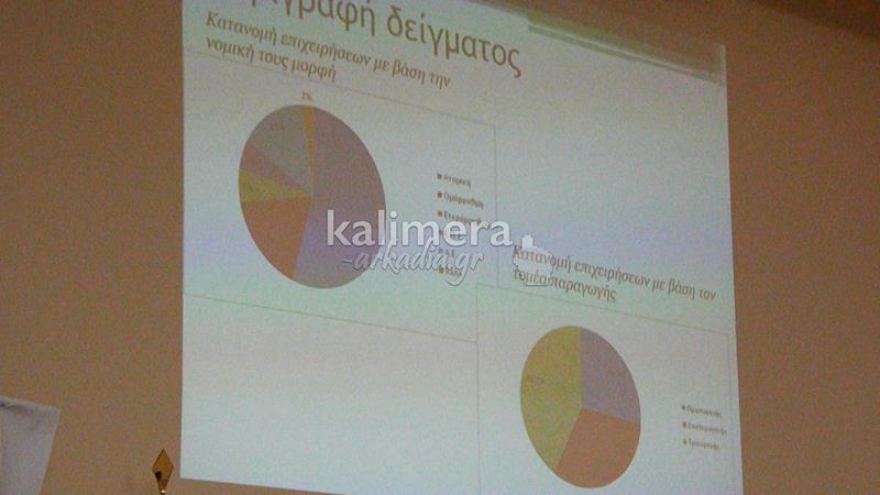 Στη συνέχεια ακολούθησε η παρουσίαση των αποτελεσμάτων της μελέτης από την Περιφερειακή Έκθεση Αρκαδικό Πανόραμα με θέμα «Προβλήματα και προοπτικές των Ελληνικών επιχειρήσεων». Αμέσως μετά έγινε η παρουσίαση της εφαρμογής για κινητά του Πανεπιστήμιου με την στήριξη και την συνεργασία του Επιμελητηρίου Αρκαδίας για την εξωστρέφεια των επιχειρήσεων.